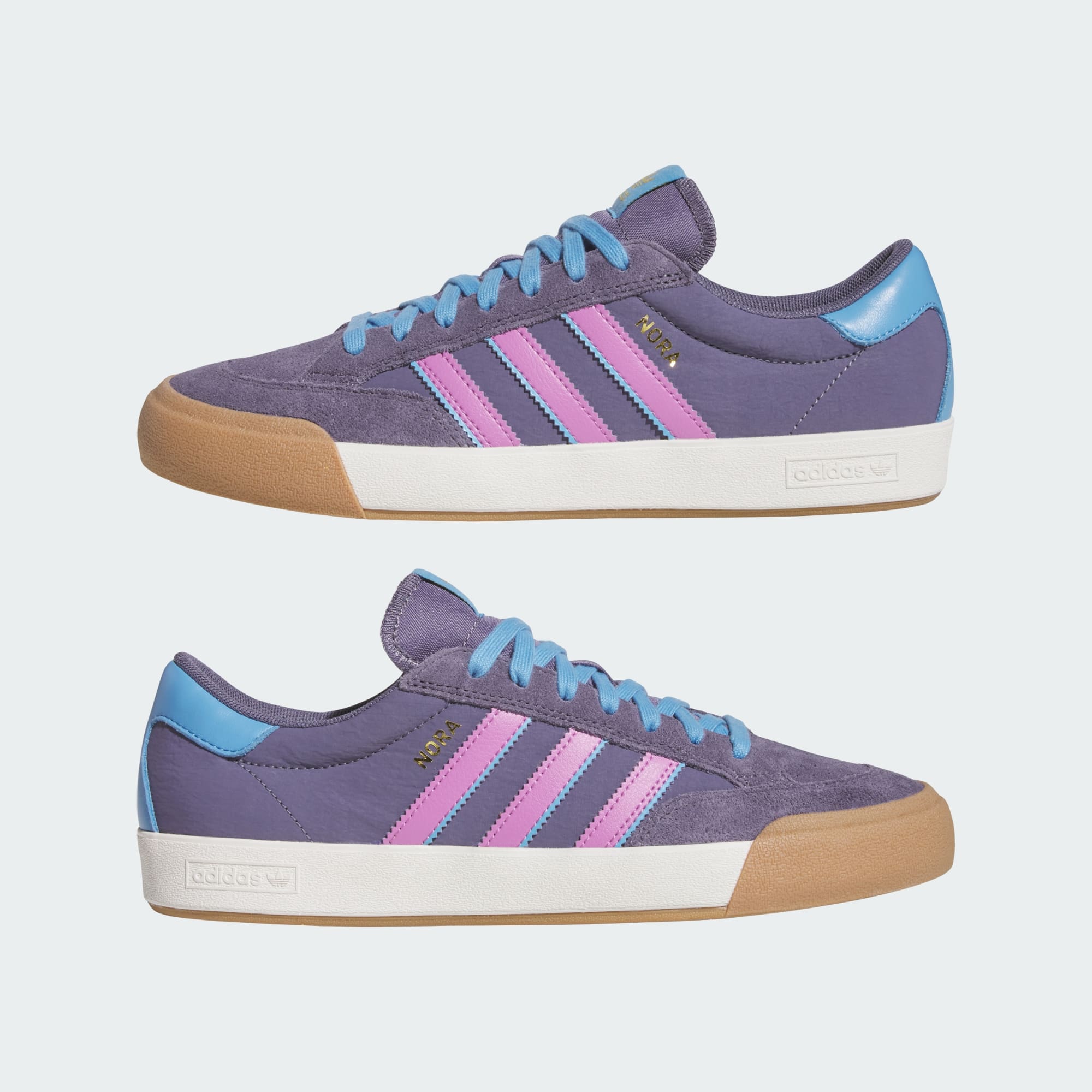 A combination of vintage tennis aesthetics and considered design choices, Nora Vasconcellos' signature adidas shoe pays homage to her roots and contributions to skateboarding. Created with a suede and textile upper, the Nora offers a blend of durability and breathability, with an added double layer toecap and cupsole construction. Finished with gold foil branding and a wavy heel, the Nora's throwback aesthetics and signature design honour the archives and embody her personal style.