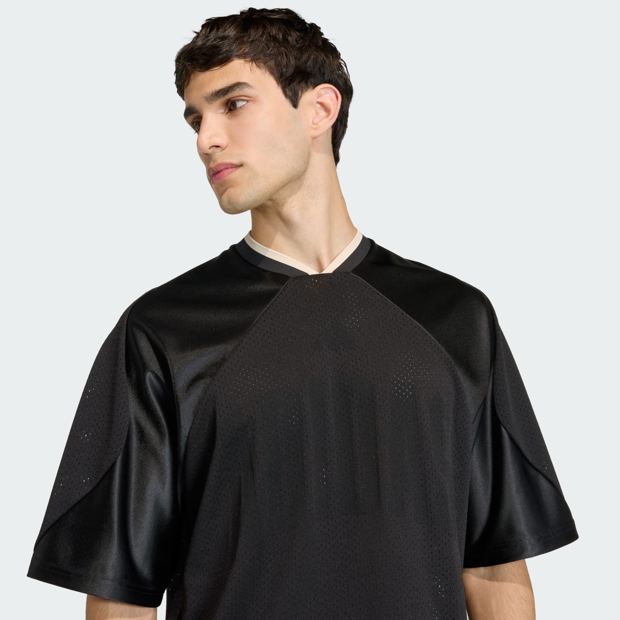 An oversized mesh t-shirt with a look inspired by US sports style.