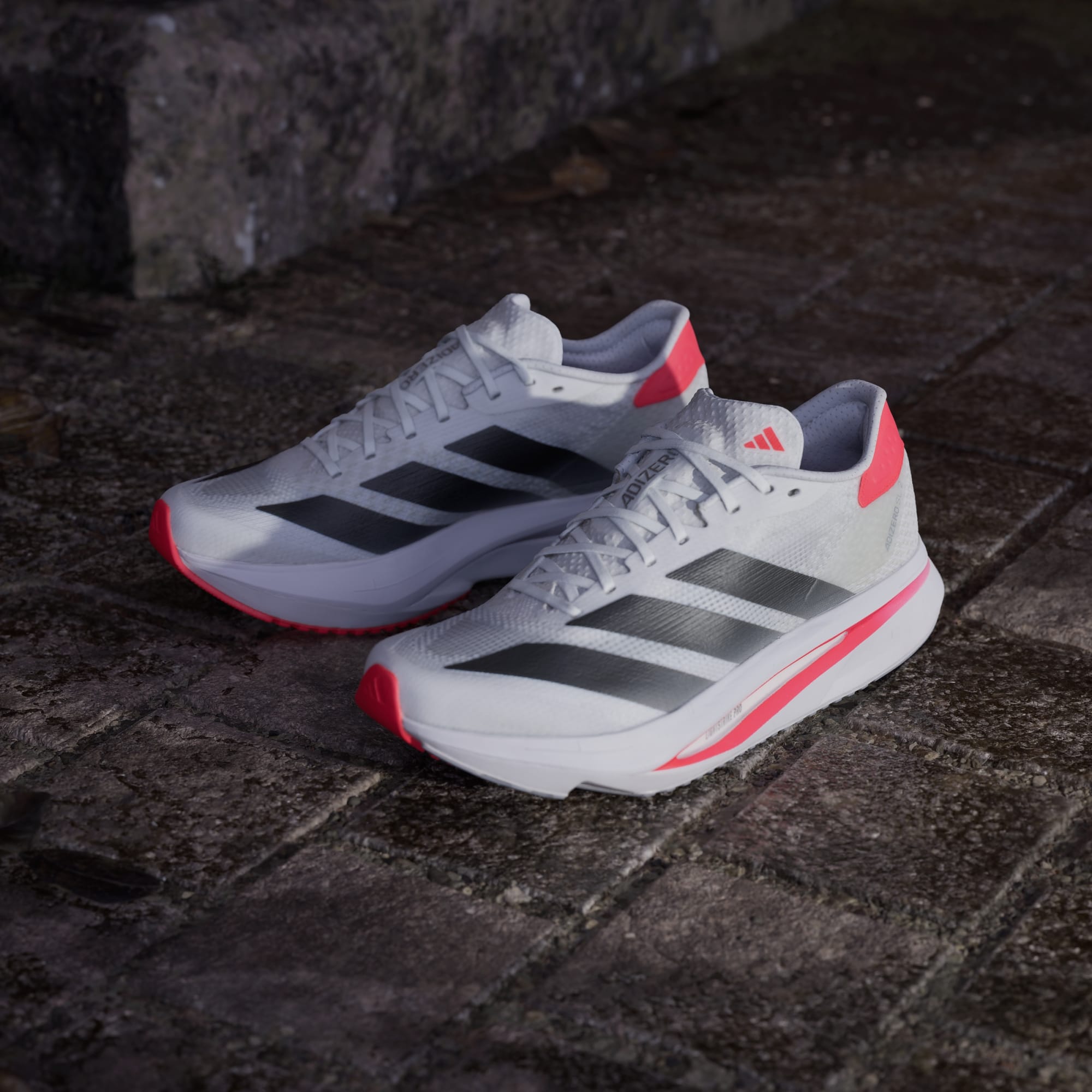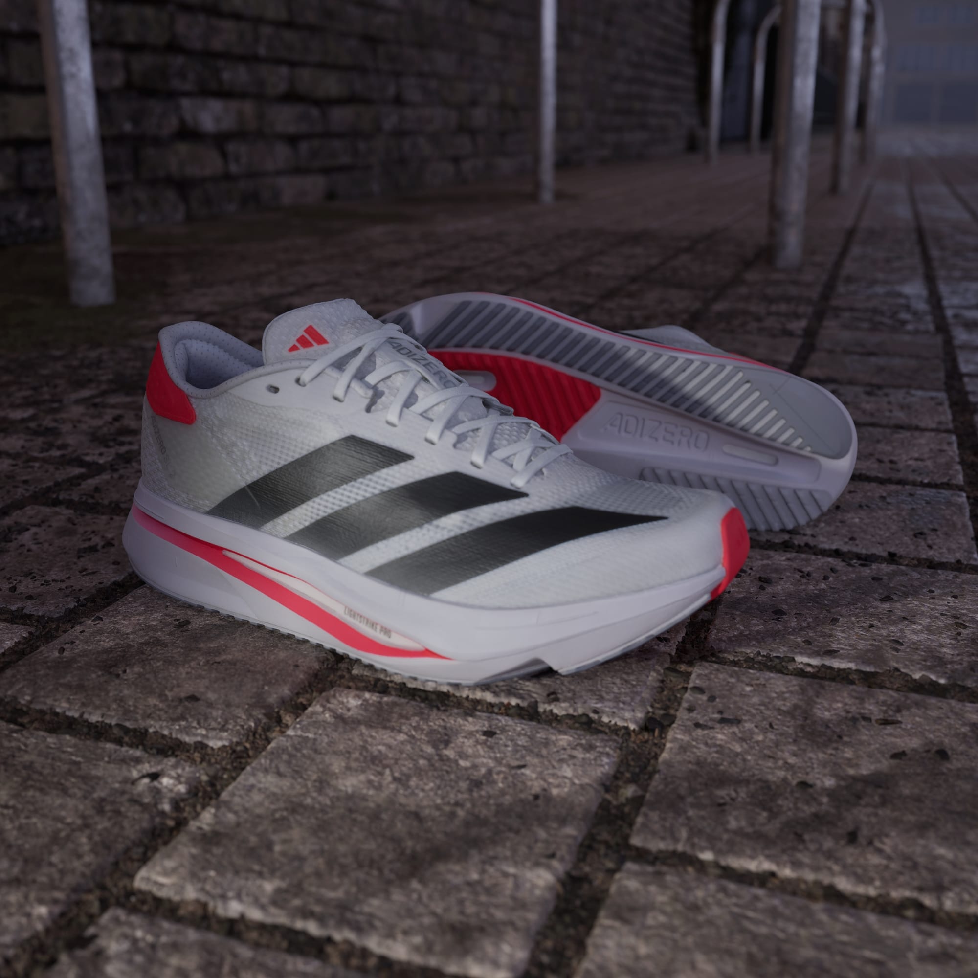 Als je sneller wilt worden en verder wilt gaan, mogen deze adidas hardloopschoenen niet ontbreken. Ze zijn licht en snel, met een ademend bovenwerk van mesh om je voeten koel te houden, plus een Lightstrike- en Lightstrike Pro-middenzool die zorgt voor langdurige energieteruggave. Terwijl jij je doelen najaagt, zorgt een rubberen loopzool met grip ervoor dat je zelfverzekerd blijft lopen.