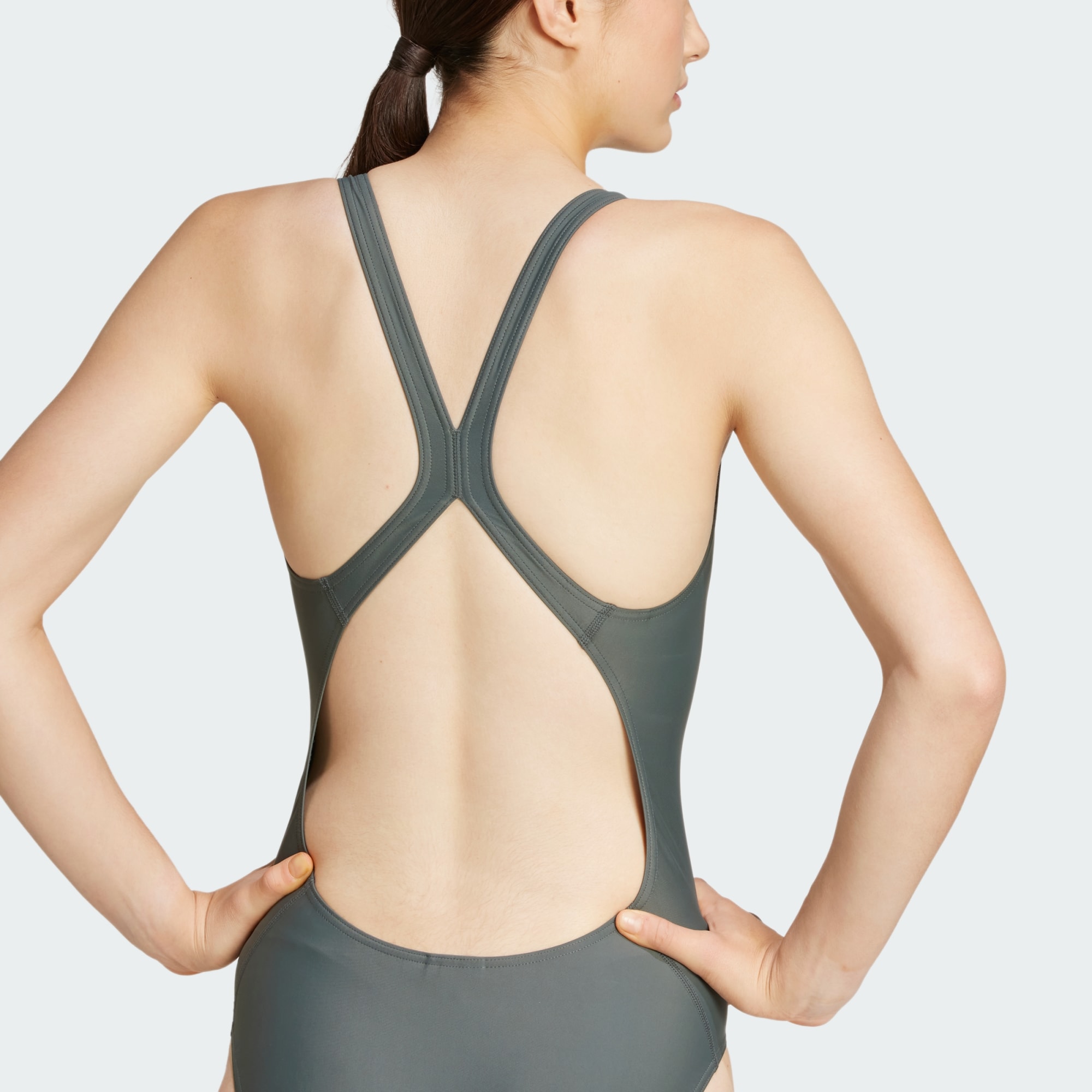 Voel je sterk en krachtig wanneer je door het water glijdt in dit adidas badpak. De zachte, chloorbestendige stof is bestand tegen de chemicaliën in een zwembad en houdt je ook zelfverzekerd als je op de kant staat. Een 3 Bar Logo laat zien wat jouw merk is.