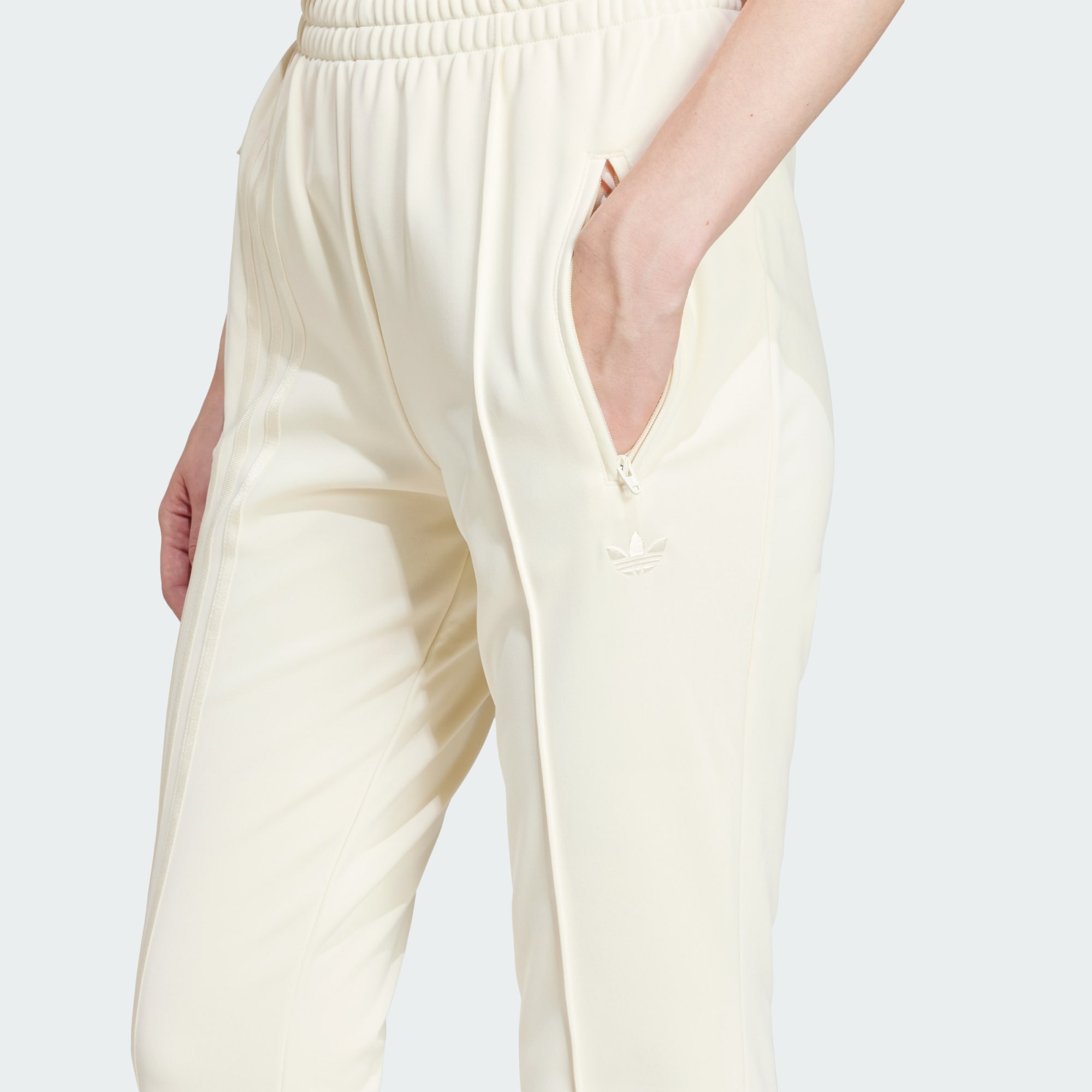 Deze adidas trainingsbroek is geïnspireerd op de sportieve stijl uit het begin van de 21ste eeuw om je hedendaagse look een snufje verleden te geven. Hij sluit nauw rond je lichaam voor een flatterend silhouet, en de wijder uitlopende pijpen creëren een speelse vibe. 3-Stripes op de ene pijp werken 't geheel karakteristiek af. Het gladde tricot houdt je comfortabel, of je nu onderweg bent of thuis relaxt.