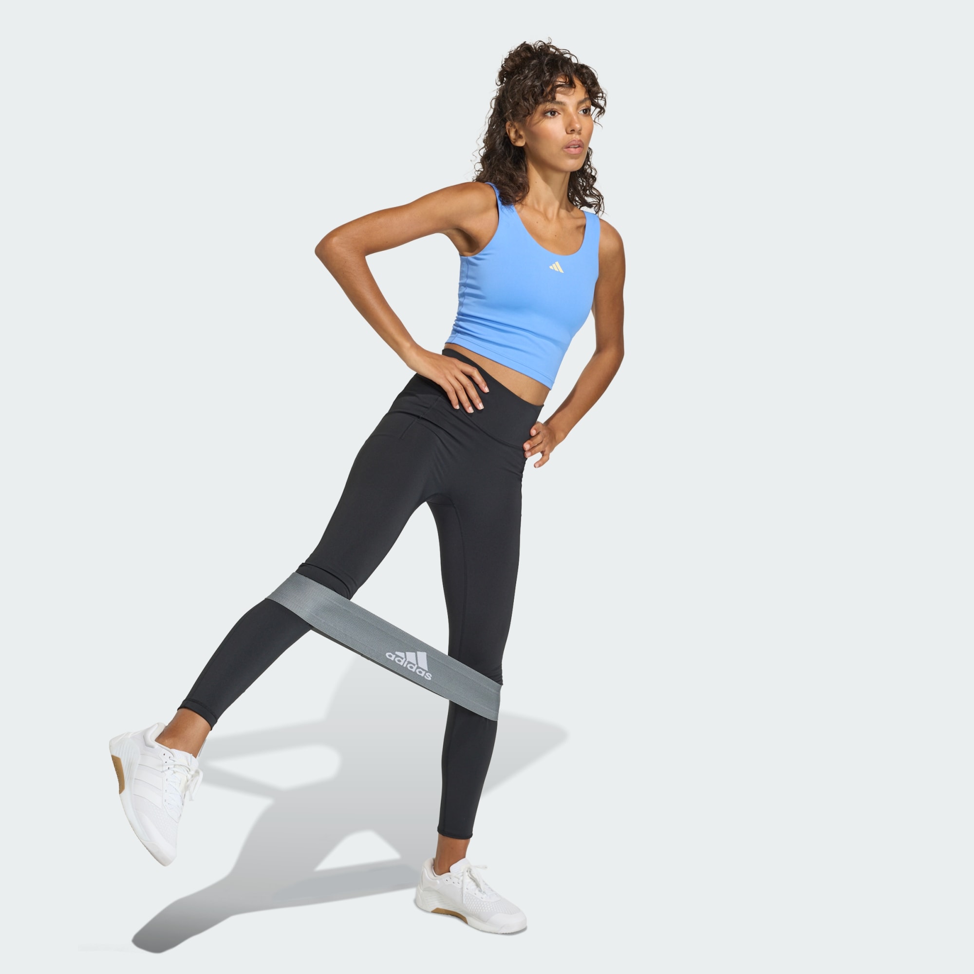 De 3-Stripes Studio All Me Light Support tanktop is ontworpen voor mensen die zowel stijl als functie zoeken in hun activewear. Met zijn gestroomlijnde zwarte colorway en diep uitgesneden rug biedt deze tanktop een flatterend silhouet dat moeiteloos overgaat van yogales naar casual hangouts. De adisoft-stof met LYCRA® ADAPTIV™ zorgt voor een ultraglad gevoel, absorbeert geurtjes en houdt je koel tijdens je hele routine. Deze tanktop voelt zo licht als een veertje en biedt medium ondersteuning zonder dat je een tweede kledingstuk nodig hebt. De gladde naden volgen de contouren van je lichaam, wat comfort en flexibiliteit garandeert terwijl je beweegt. Of je nu aan het stretchen bent in de studio of geniet van een "hot girl walk", deze tanktop is je go-to voor een harmonieuze mix van fashion en functionaliteit. Omarm de adidas geest van rebels optimisme en maak deze tanktop een hoeksteen van je garderobe. Dit is meer dan een kledingstuk: dit is een statement van jouw actieve levensstijl.