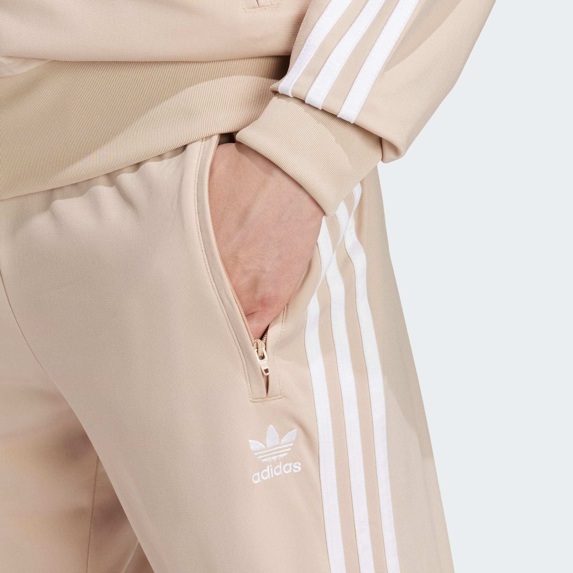 Een klassieke look krijgt de Adicolor-behandeling. Deze onmisbare basic heeft de iconische Firebird-stijl waar je zo van houdt, maar dan met een modern silhouet en een fris kleurenpalet. Het geborduurde Trefoil-logo aan de ene kant en de 3-Stripes langs de pijpen zijn puur adidas, en een elastische taille met trekkoord biedt de juiste pasvorm. Berg je belangrijke spullen op in de ritszakken en ga verder met je dag. Minimaal 70% van dit product bestaat uit een mix van gerecyclede en hernieuwbare materialen.
