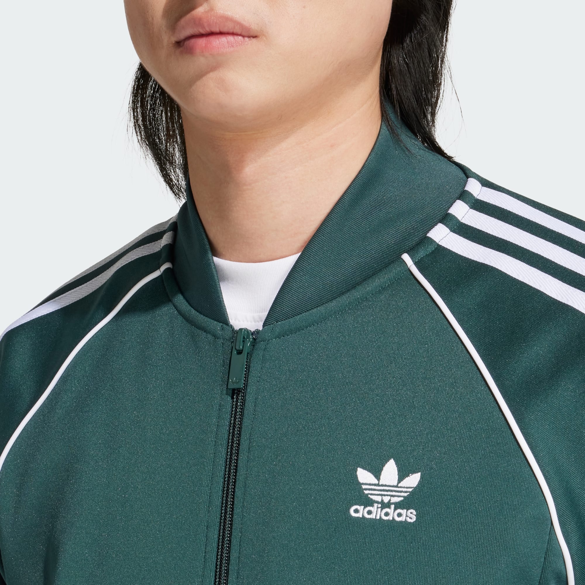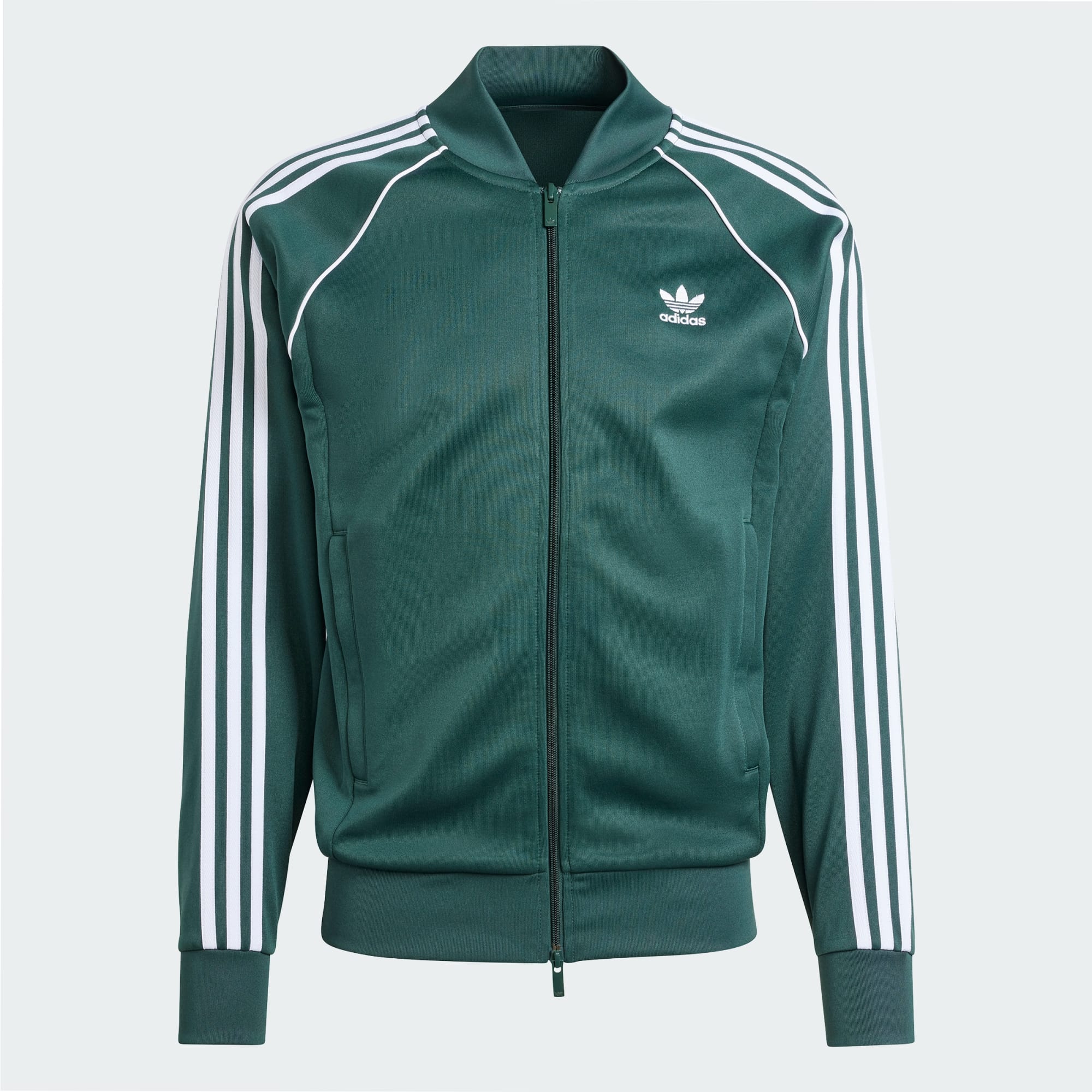 Iedereen heeft een goed trainingsjack nodig. Hier is 't jouwe. Deze adidas must-have van zacht interlock blijft trouw aan het design uit het archief dat ter inspiratie diende. Een geborduurd Trefoil-logo en 3-Stripes eren klassieke stijl, terwijl de geribbelde zoom en boorden de pasvorm precies op de juiste plek houden. Door de lange ritssluiting trek je 't makkelijk ergens over aan voor warmte, maar je kunt 't ook gewoon open laten hangen om je favoriete T-shirt eronder te laten zien. Minimaal 70% van dit product bestaat uit een mix van gerecyclede en hernieuwbare materialen.