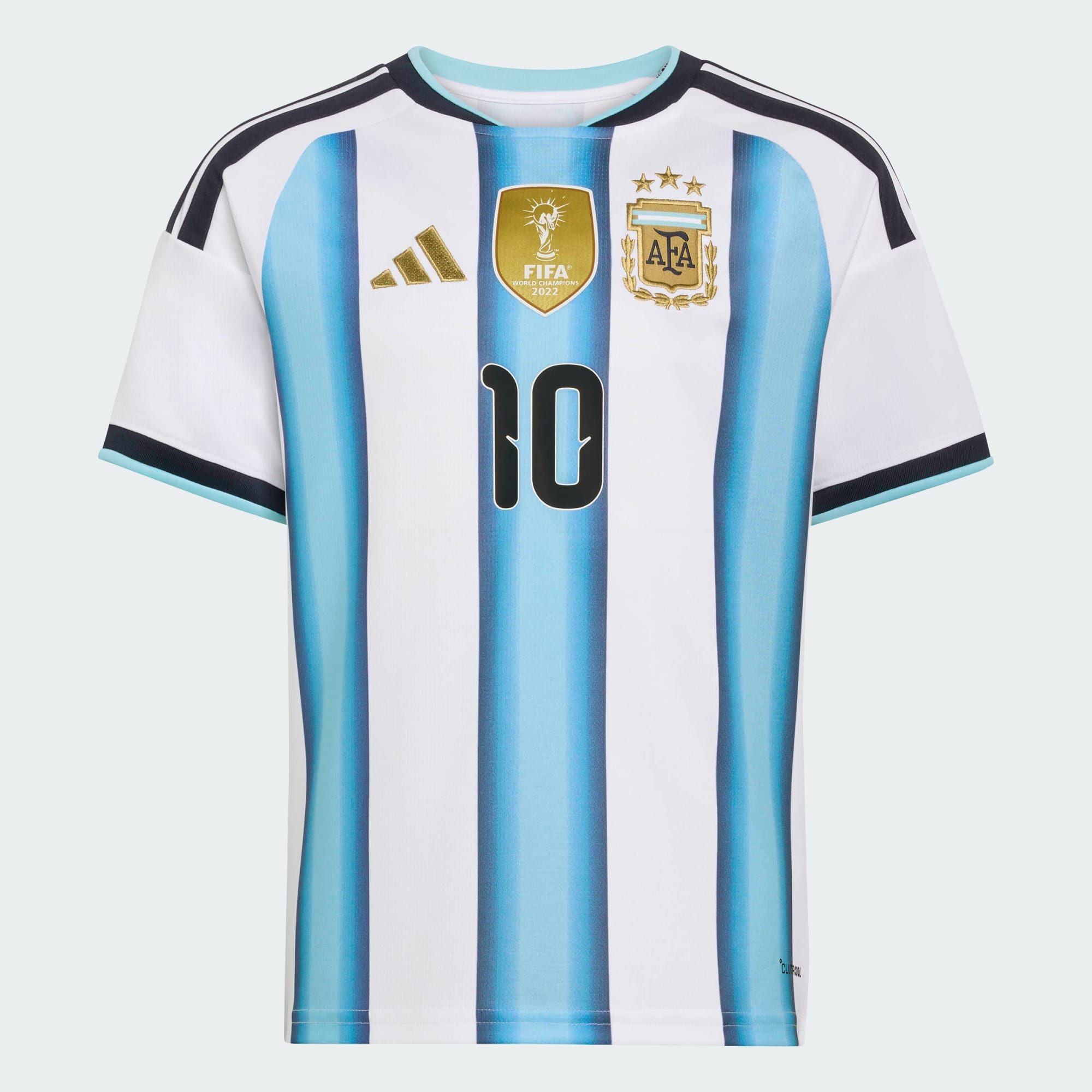 Het Argentinië 26 Messi thuisshirt is een eerbetoon aan de wereldkampioenen. Dit shirt viert het voetbal-DNA van Argentinië en verwijst naar de iconische overwinningen van '78, '86 en '22. Het geeft de essentie weer van de reis van het team naar voetbalglorie. Dit shirt is gemaakt met Climacool-technologie. Koel. Droog. Klaar. Climacool voert zweet af voor een koel en droog gevoel, en presteren zonder afgeleid te worden. De vochtafvoerende en sneldrogende stof houdt zweet tegen, zodat ze tijdens elke wedstrijd droog en comfortabel blijven. De opvallende 3-Stripes en seizoensgebonden kraag geven het een vleugje adidas geschiedenis, waardoor het een must-have is voor elke jonge voetbalfan.
