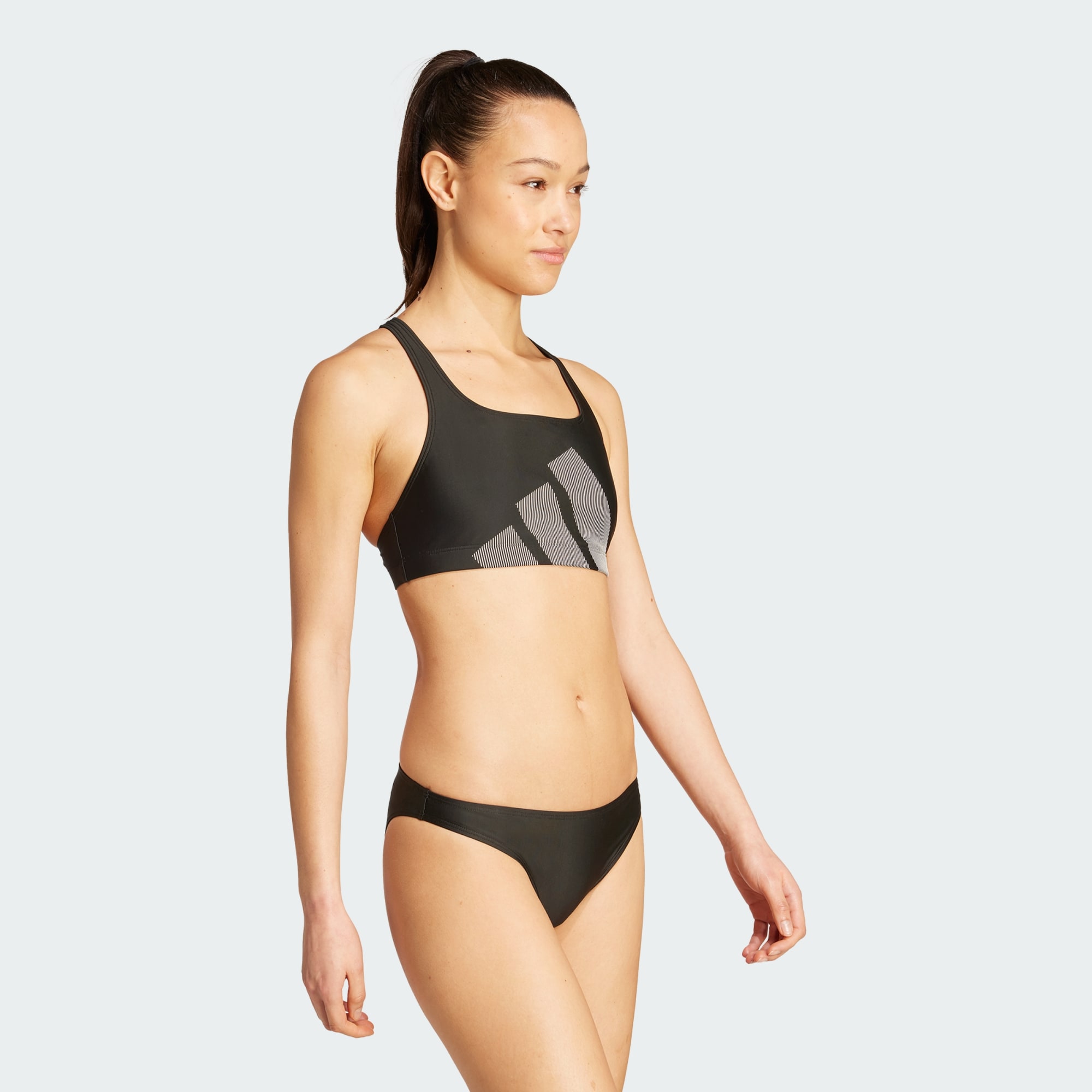 Maak een spetterende indruk in deze adidas bikini. Deze klassieke bikini heeft een racerback-topje voor een sportieve, nauwsluitende pasvorm tijdens baantjes trekken in het zwembad of ontspannen dagen op het strand. Een groot adidas 3 Bar Logo laat je atletische stijl duidelijk zien.