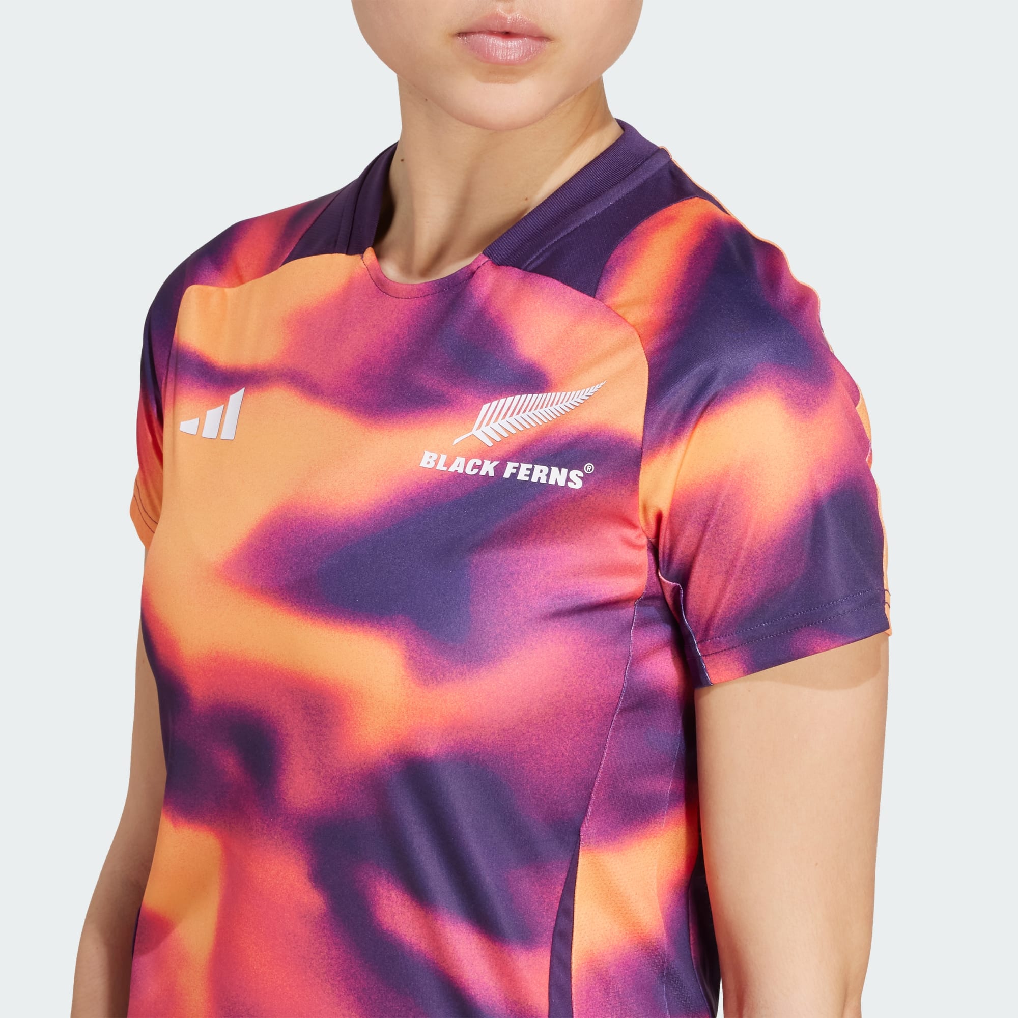 Let your skills shine when you hit the training ground. Flashing vibrant colours inspired by a New Zealand sunset, this adidas rugby tee is the one the Black Ferns squad wear as they prepare to challenge for their seventh world title in England. Lightweight interlock fabric allows you to focus on your game without distraction.