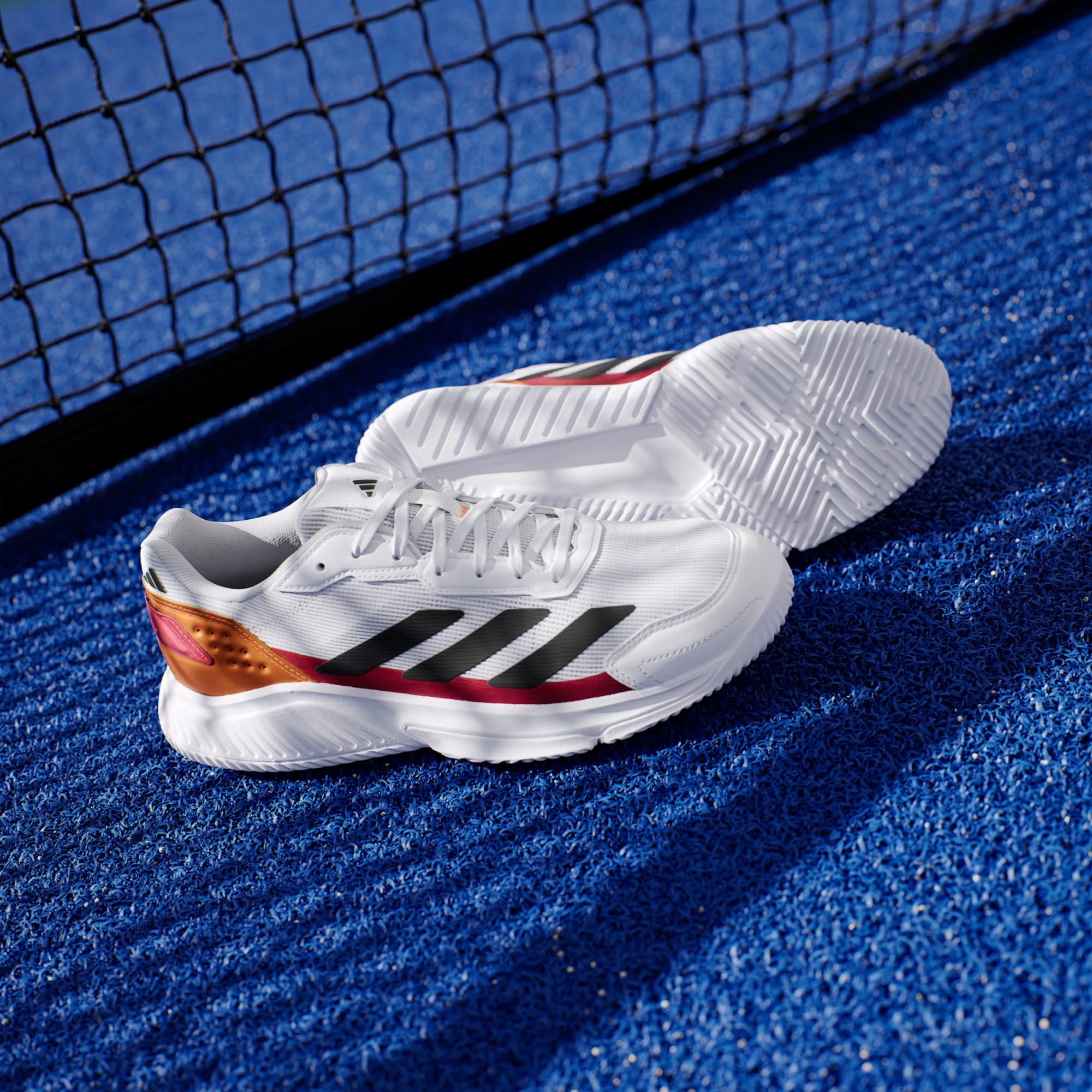Om te kunnen domineren op de padelbaan moet je razendsnel zijn. Daarom combineren deze adidas Courtquick schoenen een lichtgewicht bovenwerk van textiel met een stabiliserende Slingframe-constructie om wendingen en snelle overgangen te ondersteunen. Het samenspel van een flexibele Bounce-middenzool en Cloudfoam-demping zorgt ervoor dat je altijd je beste beentje voor kunt zetten. Dit product bestaat voor minstens 20% uit gerecyclede materialen. Door hergebruik van materialen die al eerder zijn gecreëerd, helpen we afval verminderen, en ook onze afhankelijkheid van beperkt beschikbare grondstoffen. Daarnaast verkleint het de voetafdruk van onze producten.