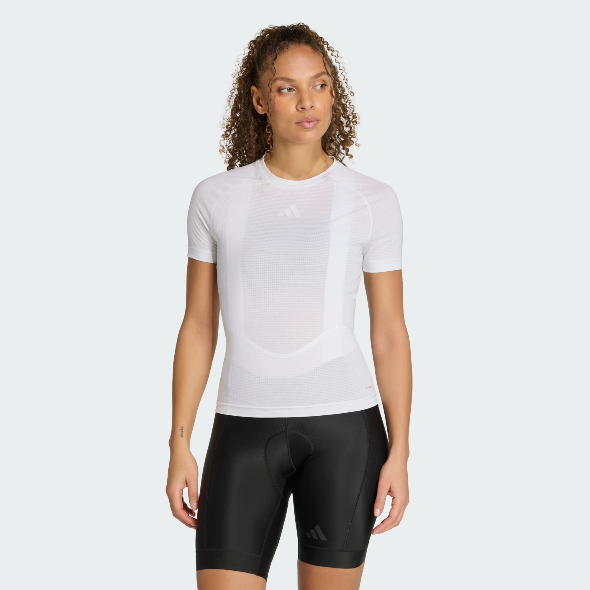 Ontdek de nieuwe hoeksteen van je fietsgarderobe met het adidas Cycling Base Layer shirt. Dit onmisbare item is ontworpen om de lichaamstemperatuur te reguleren en vergroot de veelzijdigheid van je fietskleding in verschillende weersomstandigheden en seizoenen. Koel. Droog. Voorbereid. Climacool-technologie voert zweet af en verspreidt het voor koele, droge en afleidingsvrije prestaties. Of je nu racet of traint, deze basislaag is jouw go-to voor comfort en prestaties. De ademende constructie van mesh ondersteunt de luchtstroom, zodat je je zelfs tijdens intensieve sessies comfortabel voelt. Korte mouwen en het iconische 3 Bar Logo op de borst geven je fietsensemble een extra vleugje stijl. Ga vol vertrouwen de weg op, wetende dat je uitrusting ontworpen is om je reis te ondersteunen. Verrijk je fietservaring met deze basislaag van adidas, waarin prestaties en stijl samenkomen.