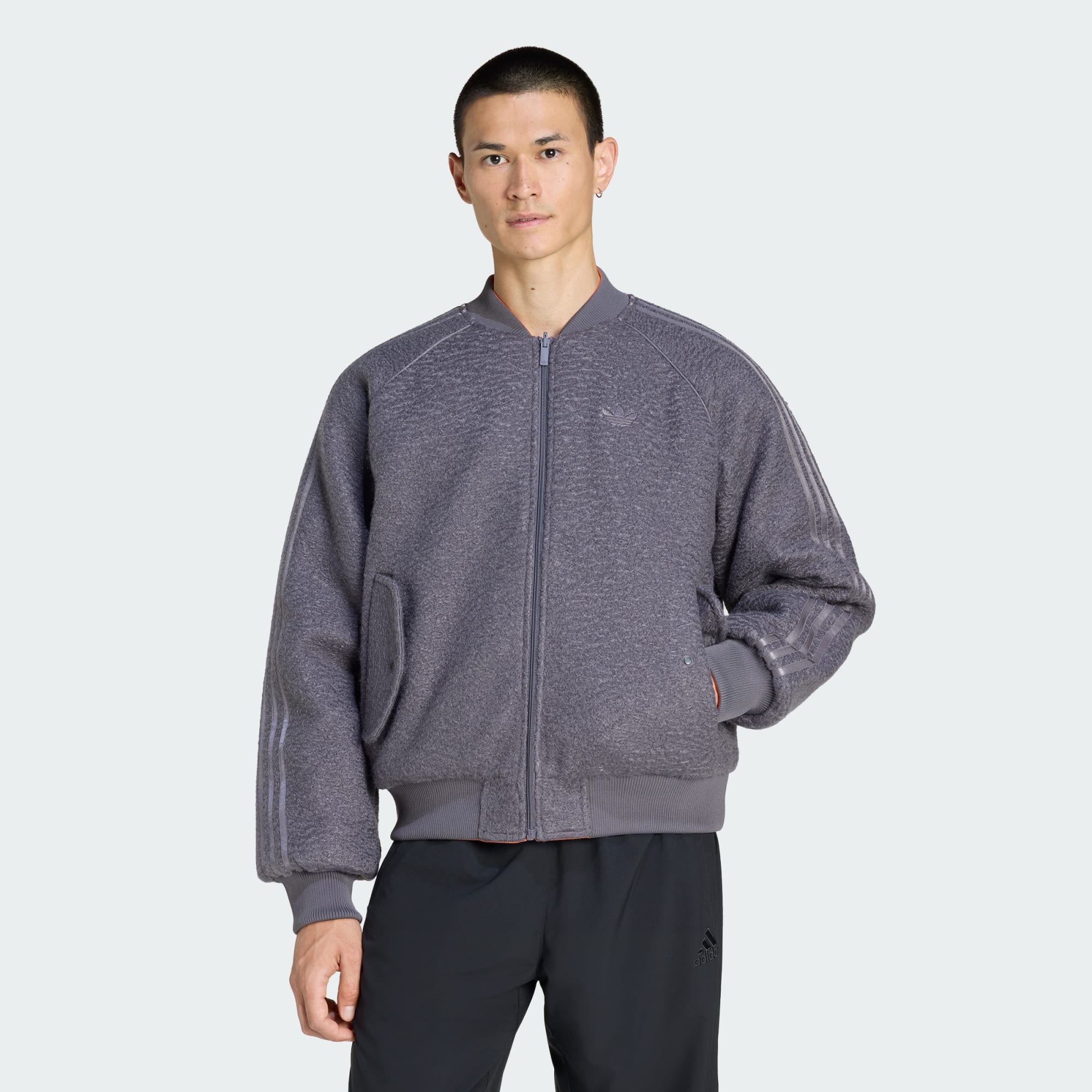 Het adidas dubbelzijdige Superstar bomberjack is een warme laag die deze winter stijl en veelzijdigheid samenbrengt. Met een volledig dubbelzijdig ontwerp kun je wisselen tussen de meer gedempte grijze strata-kant met boucle-buitenkant en ritszakken aan de zijkant en de levendige semi-impact oranje nylon-kant met overdreven ruitvormige donskamers en opgestikte zakken om bij jouw outfit - en jouw stemming - te passen. Deze jas is gemaakt met ongelooflijke details en flair en weerspiegelt jouw gevoel voor in het oog springende stijl terwijl hij je helpt warm te blijven. De tweekleurig platgebreide ribstof weerspiegelt het ontwerp van de jas voor een vleugje verfijning en coördinatie. Omarm de Originals-geest van adidas met meerdere grafische branding, waaronder het Trefoil-logo en het enkele varenlogo dat de iconische All Blacks viert. Metalen hardware met het Trefoil-logo en een geweven badge maken de onmiskenbare look compleet. Of je nu laagjes aanbrengt om de kou te trotseren of een fashion statement wilt maken, deze veelzijdige maar charismatische bomber is op een missie om je comfortabel en stijlvol te houden.