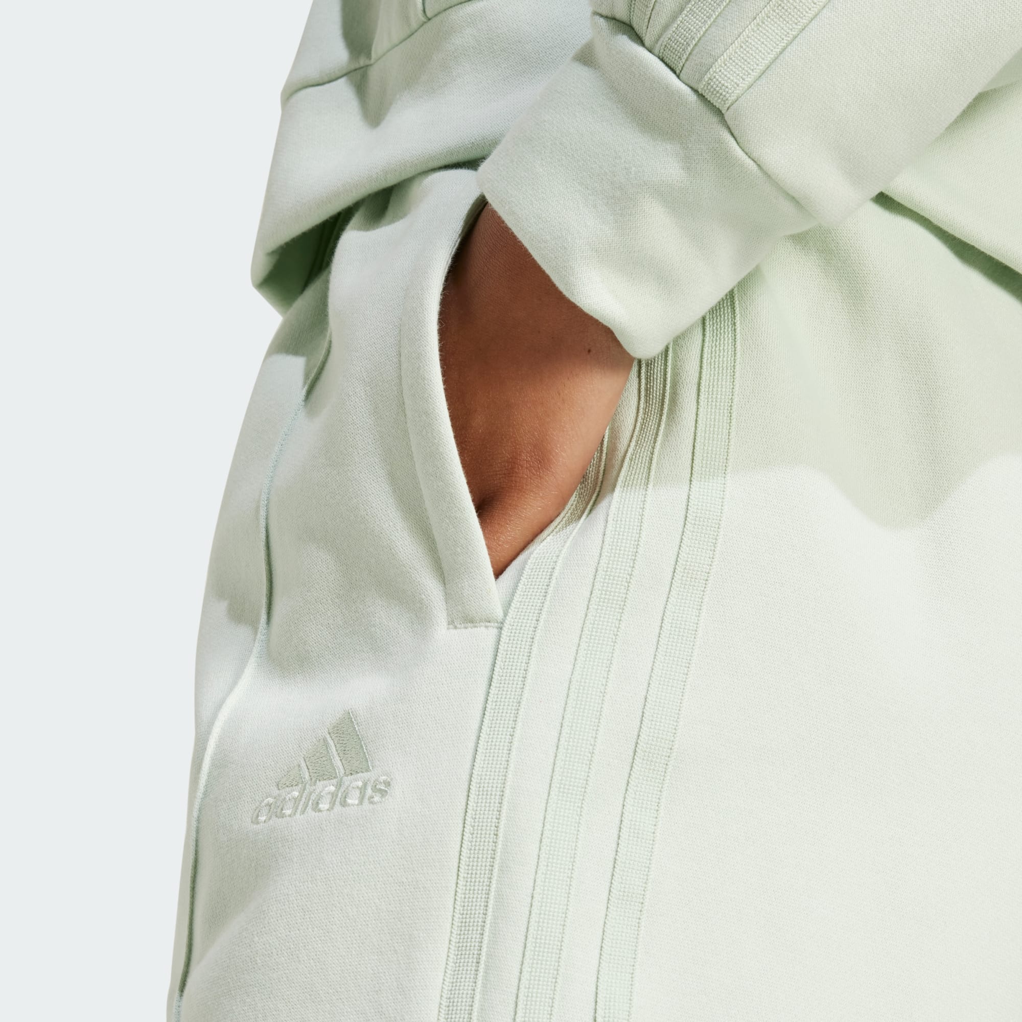 Dit trainingspak is ontworpen voor dagelijkse avonturen en makkelijk bewegen. Dit adidas trainingspak van een behaaglijke fleecemix is versierd met de karakteristieke 3-Stripes en houdt je comfortabel en tegelijkertijd sportief. De high-rise broek heeft een losvallend model dat je niet in de weg zit tijdens je dagelijkse bezigheden. Door te kiezen voor gerecycled materiaal kunnen we materialen hergebruiken die al zijn gemaakt, wat helpt om afval te verminderen. Het kiezen voor hernieuwbare materialen zal ons helpen om onze afhankelijkheid van eindige hulpbronnen te verminderen. Onze producten die zijn gemaakt met gerecyclede en hernieuwbare materialen bevatten in totaal minimaal 70% van deze materialen.