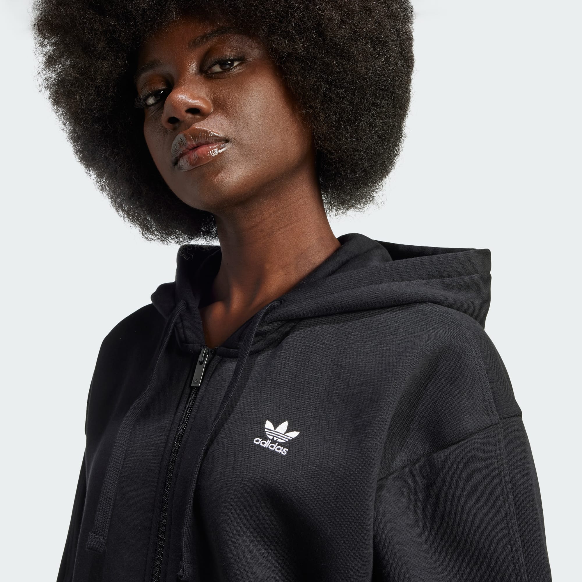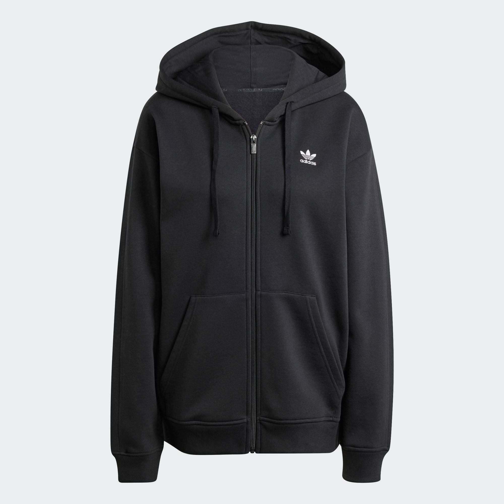 Wikkel jezelf in zachtheid en warmte. Deze adidas Essentials hoodie levert beide. Hij is gemaakt van fleece en heeft ribbels op de boorden en zoom om de kou op afstand te houden. Het losvallende silhouet creëert een relaxte vibe, en de lange ritssluiting geeft je controle over de mate van bedekking.