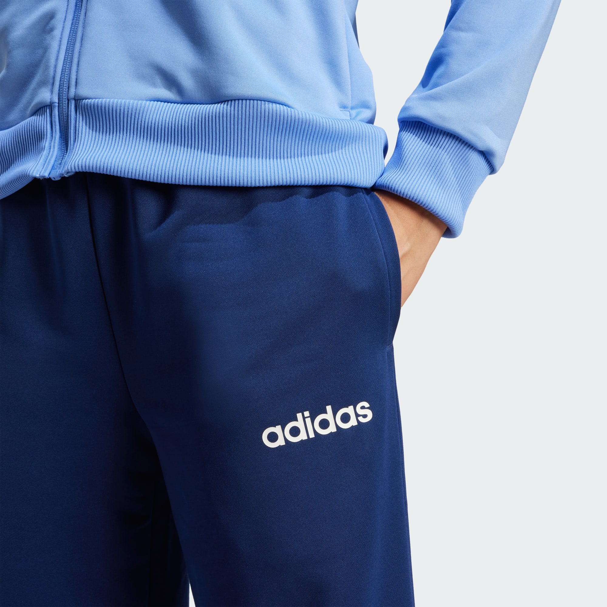 Dit adidas trainingspak is gemaakt voor behaaglijk comfort. De set van zachte, gladde stof bestaat uit een jack met relaxt model en een strakke broek, zodat je met gemak kunt loungen én bewegen. Geborduurde details werken 't premium af en de geribbelde boorden creëren een sportieve vibe. Trek 't aan voor een ontspannen weekend of wanneer je ook maar behoefte hebt aan een casual outfit. Dit product is gemaakt met 100% gerecyclede materialen. Door hergebruik van materialen die al eerder zijn gecreëerd, helpen we afval verminderen, en ook onze afhankelijkheid van beperkt beschikbare grondstoffen. Daarnaast verkleint het de voetafdruk van onze producten.