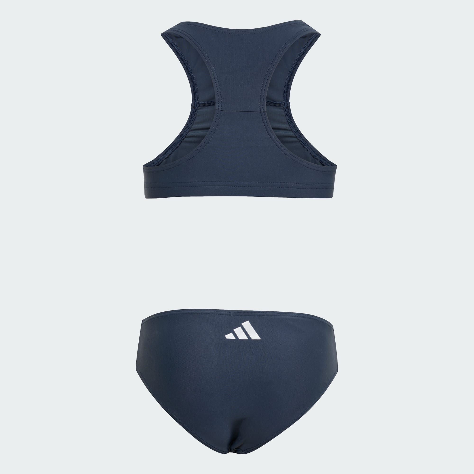 Met deze adidas bikini voor kids kunnen jonge zwemmers hun individualiteit laten zien in en buiten het zwembad. Een racerbackmodel zorgt voor volledige bewegingsvrijheid. Een zilveren opdruk en een glinsterend 3 Bar Logo bieden een vleugje glans.