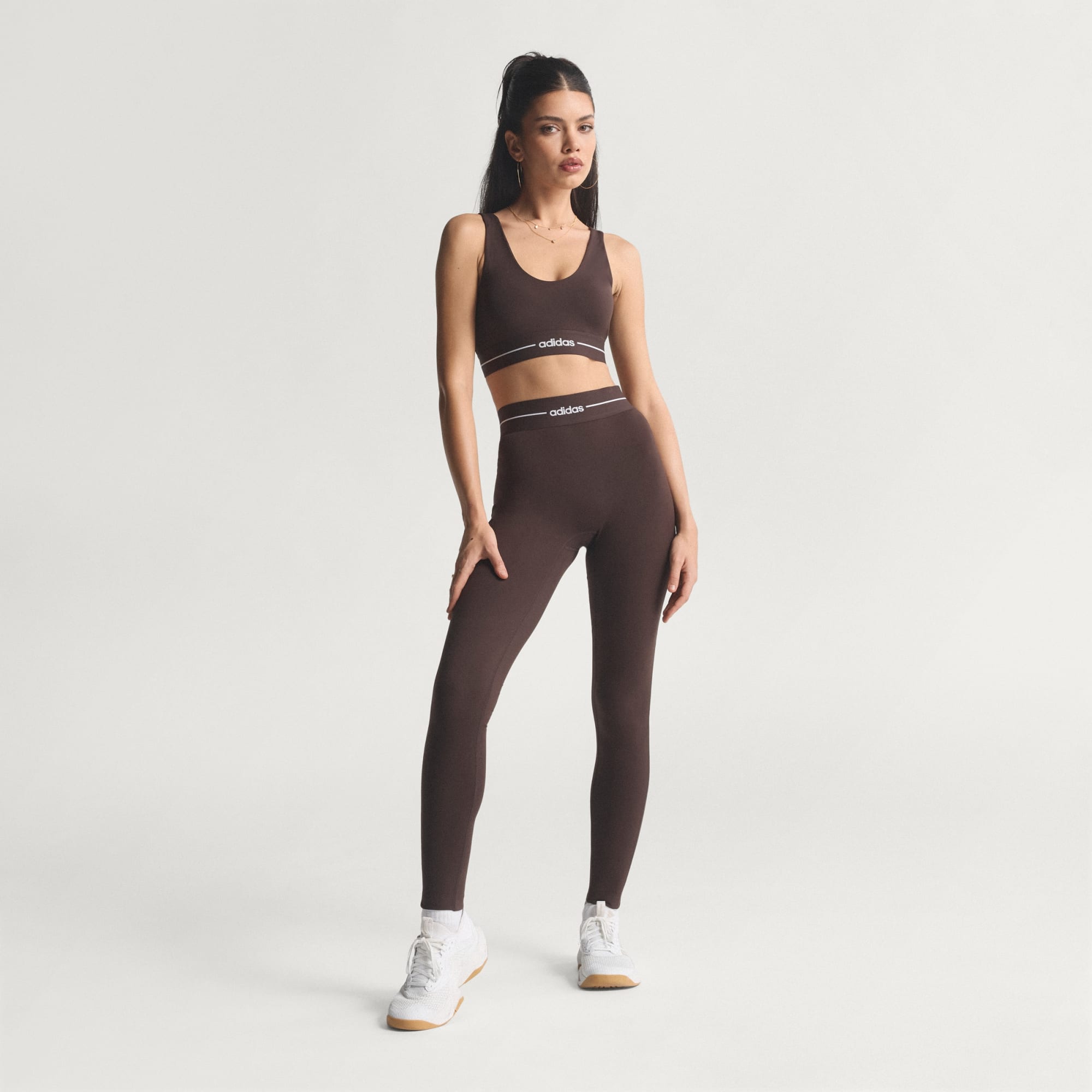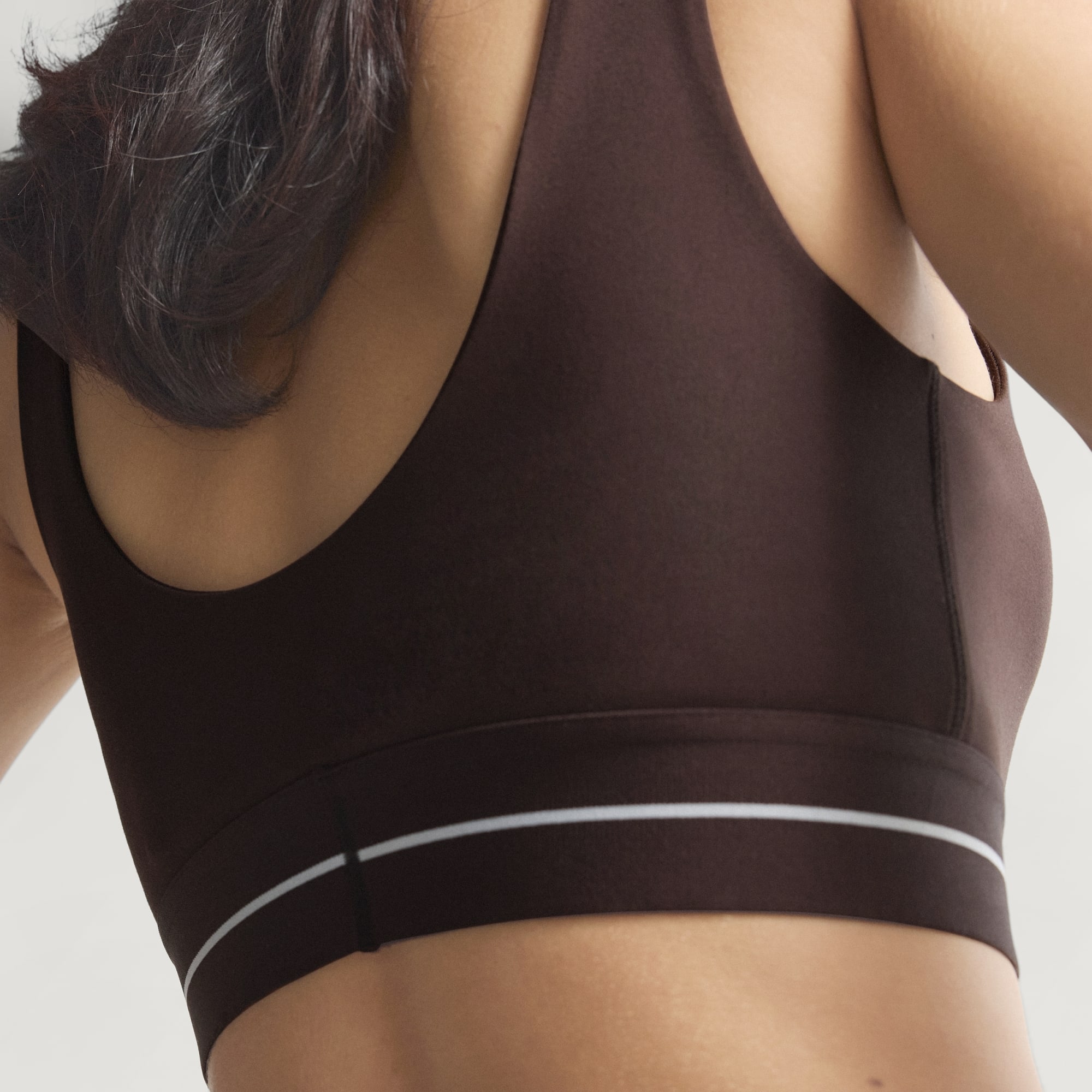De Hyperglam Light Support beha combineert prestaties met een straatwaardig design dat net zo goed past in een exclusieve sportschool als in een koffiebar. Met zijn gestroomlijnde ontwerp en minimale merkdetials zorgt dit ontwerp voor sportieve geloofwaardigheid, maar zonder schreeuwerige technologie, zodat hij perfect past bij je dagelijkse look. Een elastische tailleband van jacquard met een lineair logo aan de voorkant houdt de pasvorm goed en vormt een subtiel, maar stijlvol detail. De lichte ondersteuning is geschikt voor ontspannen activiteiten en geeft je comfort en vertrouwen zonder concessies op het gebied van stijl. Climacool-technologie voert zweet af, zodat je koel en droog blijft, en het peached interlock materiaal voelt zacht aan. Deze beha is ontworpen om de hele dag te dragen en beweegt naadloos met je mee - of je nu gaat sporten, thuis blijft om te relaxen of allebei.
