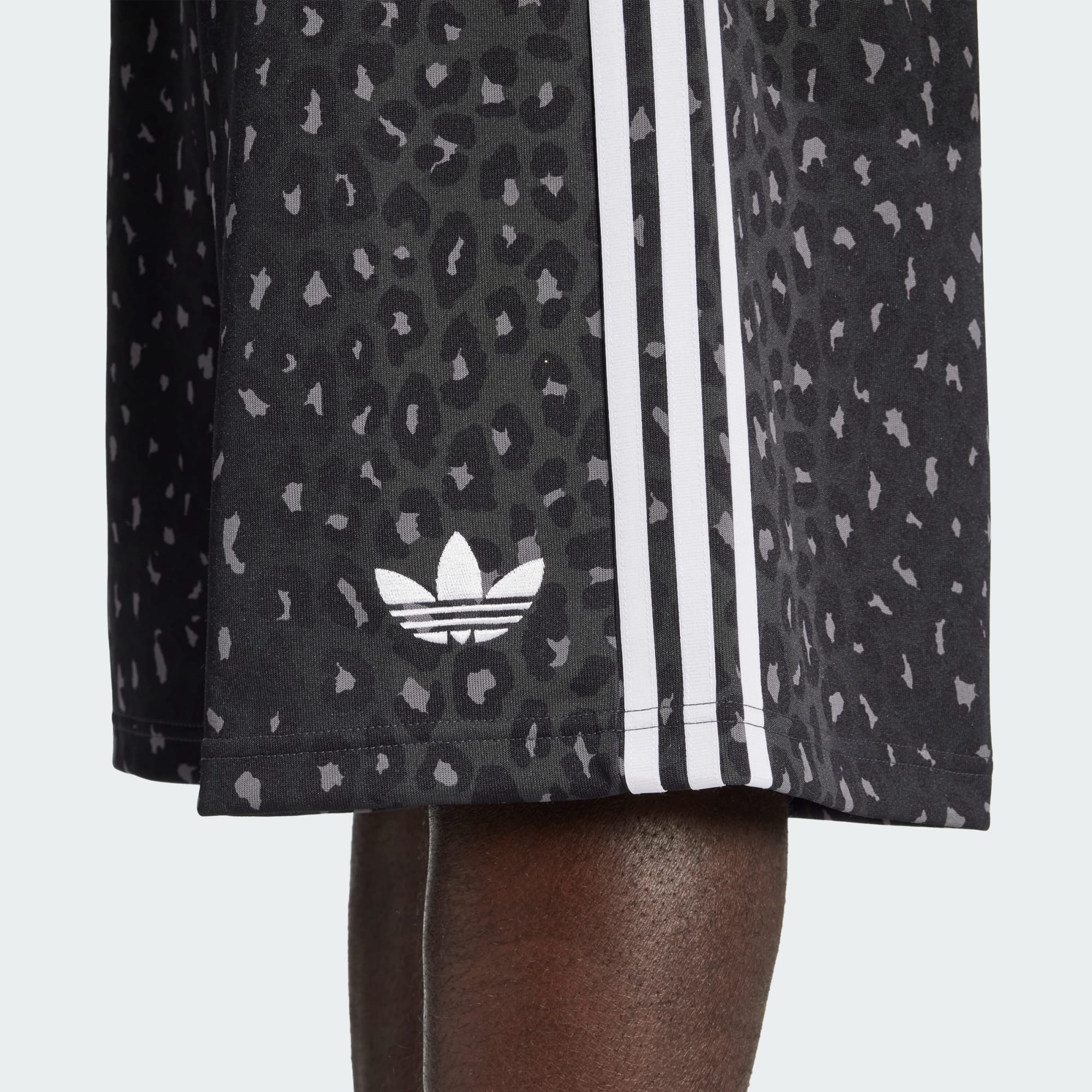 Deze opvallende, stijlvolle adidas short met luipaardprint maakt een statement. Het losvallende model van zacht, glad interlock materiaal staat volledig in het teken van comfort. Het oversized silhouet is perfect om lekker thuis te relaxen of de stad in te gaan.