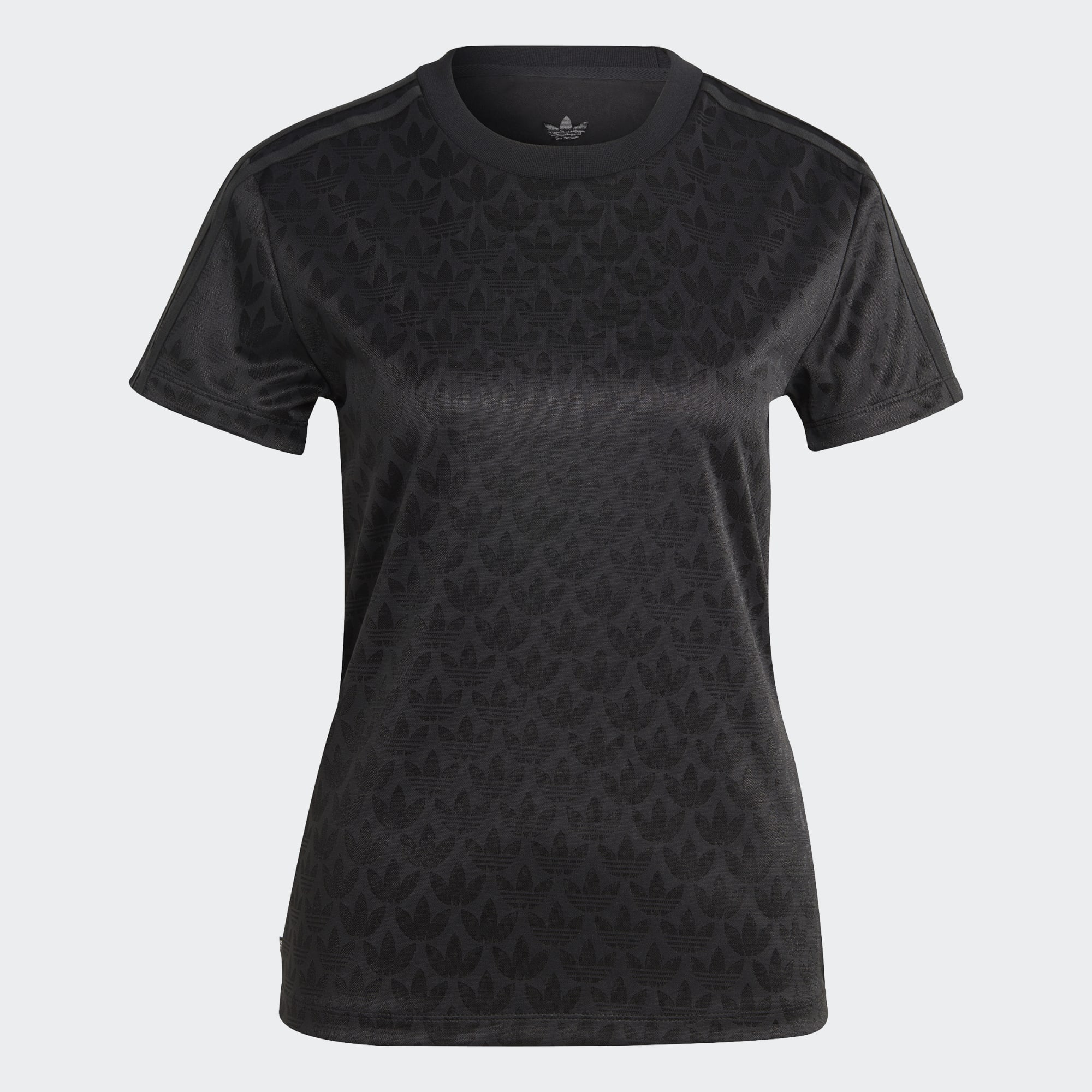 Een adidas T-shirt met monogrammen, gemaakt met gerecycled materiaal.