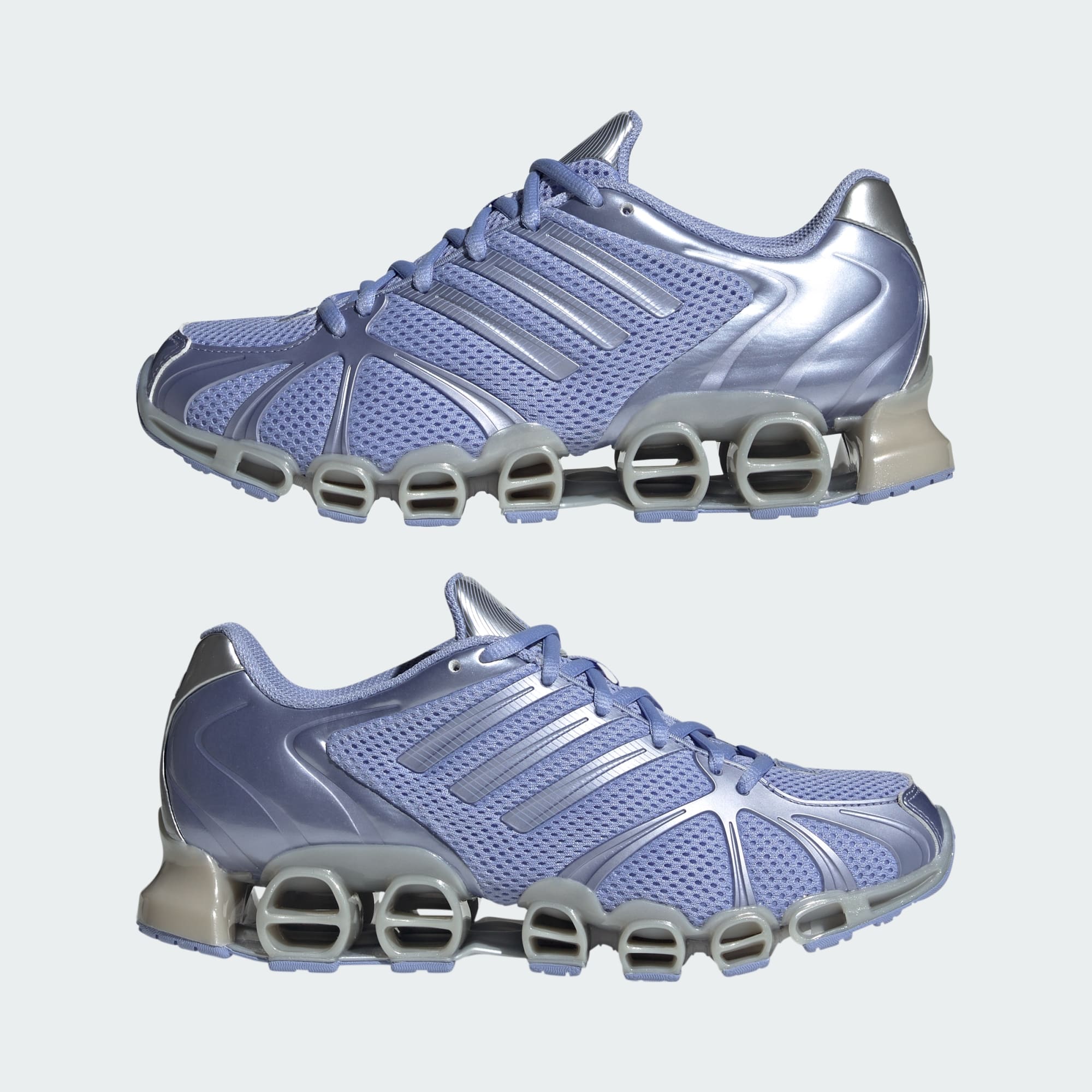 De Mega Ghostride schoenen van adidas draaien helemaal om de kracht van transformatie. Het design vernieuwt de Y2K-trend en haalt inspiratie uit de opvallende, maximalistische stijl van dat tijdperk. Het sportieve bovenwerk van mesh is afgewerkt met matte metallic 3-Stripes en een frame voorop. Een glanzende overlay van TPU op de achterkant werkt 'm opvallend af. Het Megaride-design en de Bounce-middenzool bieden het comfort en de attitude die je van adidas Originals gewend bent.