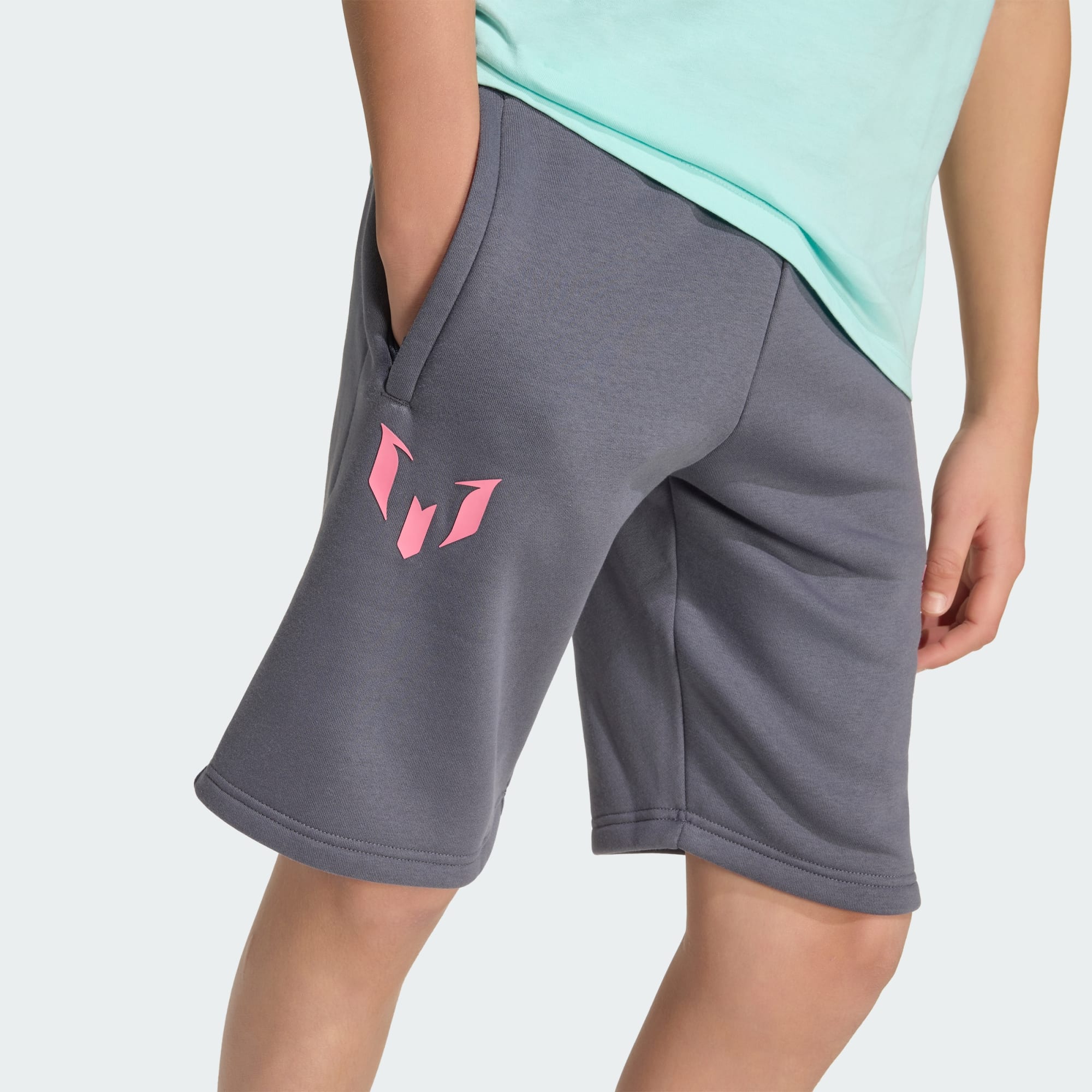 Vertegenwoordig de beste die het voetbal kent, óók als je het even rustig aan doet. Deze junior adidas short van zachte fleece heeft een trekkoord in de taille om je ook buiten het veld comfortabel te houden. Boven de zoom prijken een Messi-logo en een Trefoil voor een sportieve afwerking.