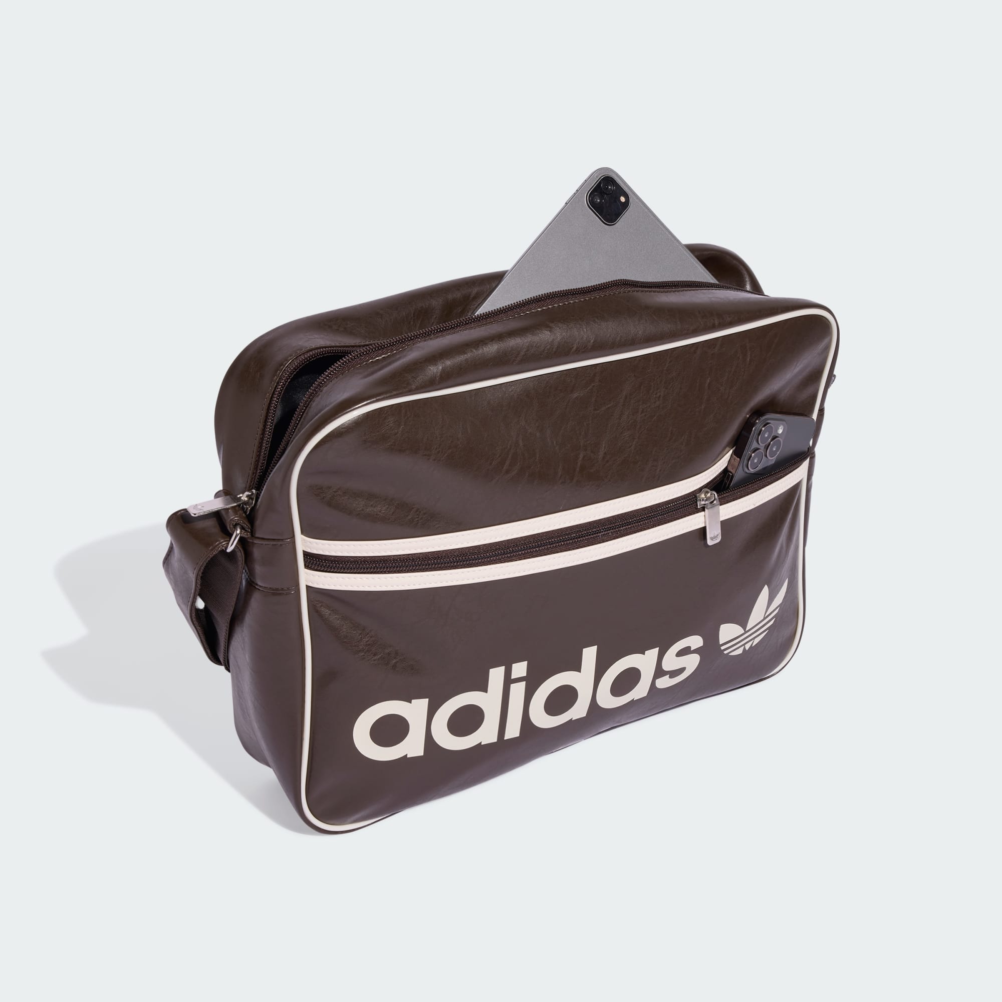 Deze adidas Airliner Tas heeft een iconische look die regelrecht uit ons archief komt. Het stevige model van imitatieleer houdt al je spullen op orde. Of je nu een drukke dag voor de boeg hebt of naar een andere tijdzone reist, deze handige tas is perfect om onmisbare items veilig en binnen handbereik te houden.