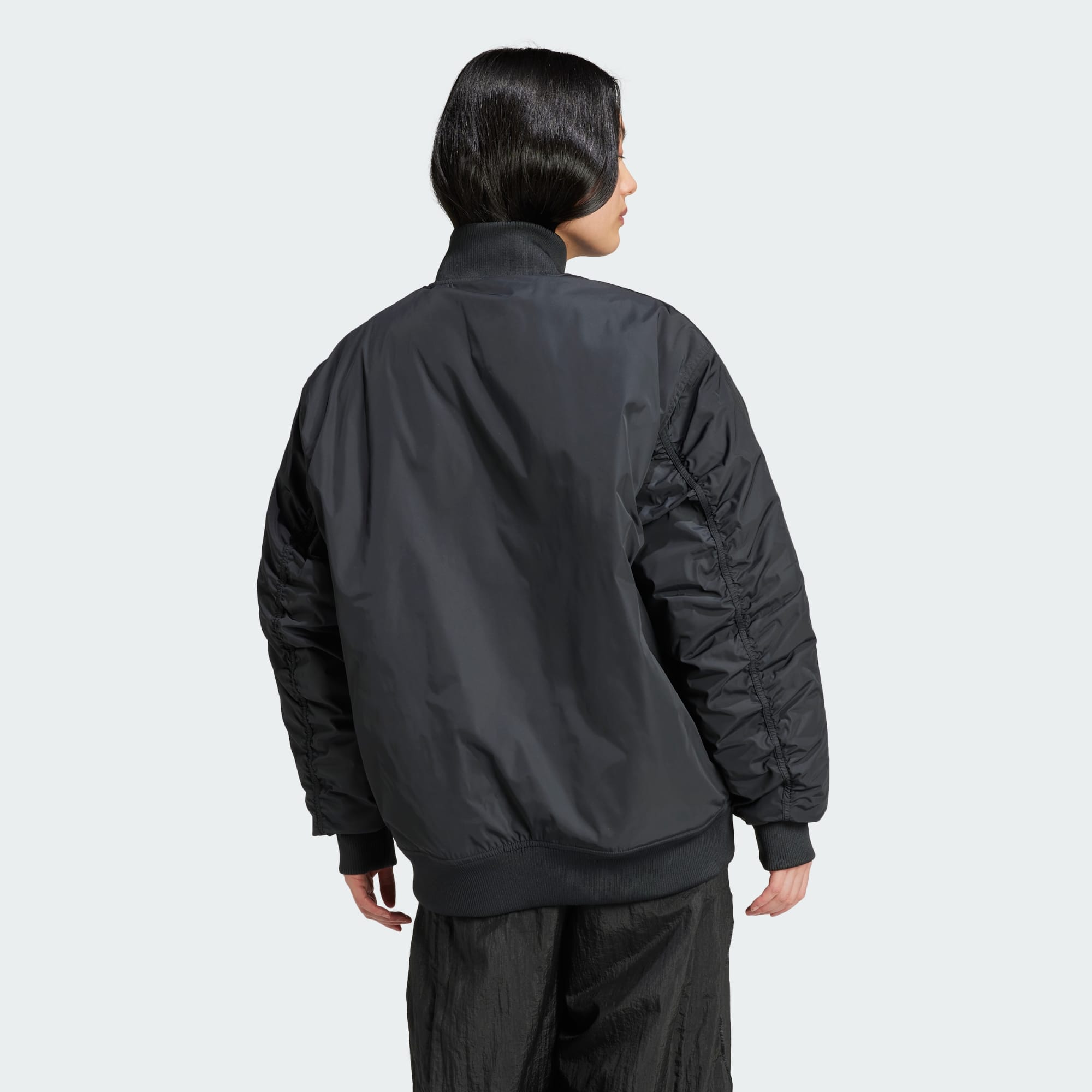 Een minimalistisch bomberjack dat is gemaakt met gerecycled materiaal.