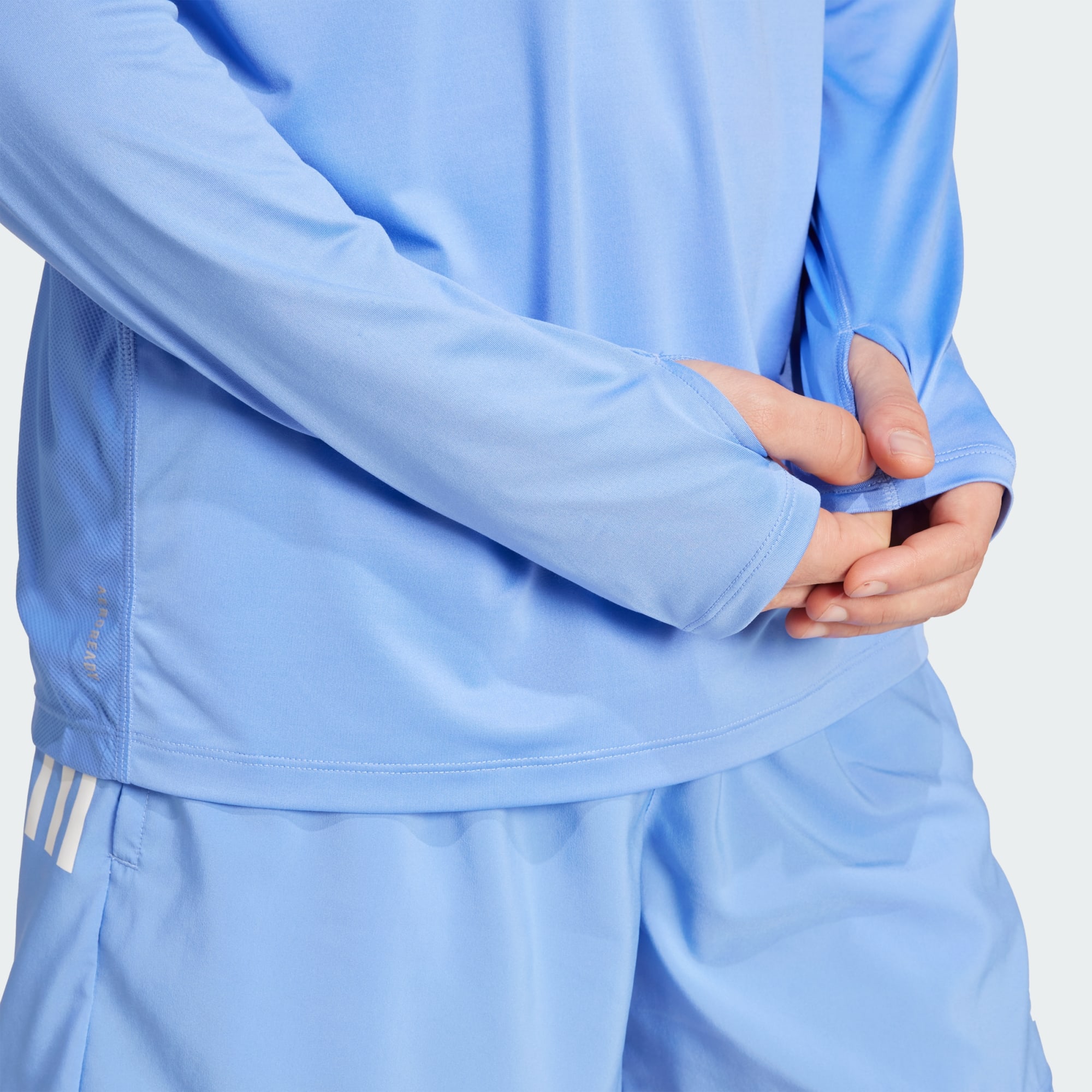 Van warming-up tot cooling-down tot hardlopen bij koud weer: dit adidas Own The Run shirt met halflange rits houdt je heerlijk comfortabel. AEROREADY houdt vocht tegen zodat je je kilometer na kilometer fris blijft voelen, en met de halflange rits regel je de ventilatie. Duimgaten op de boorden houden de mouwen op hun plaats voor warme handen.