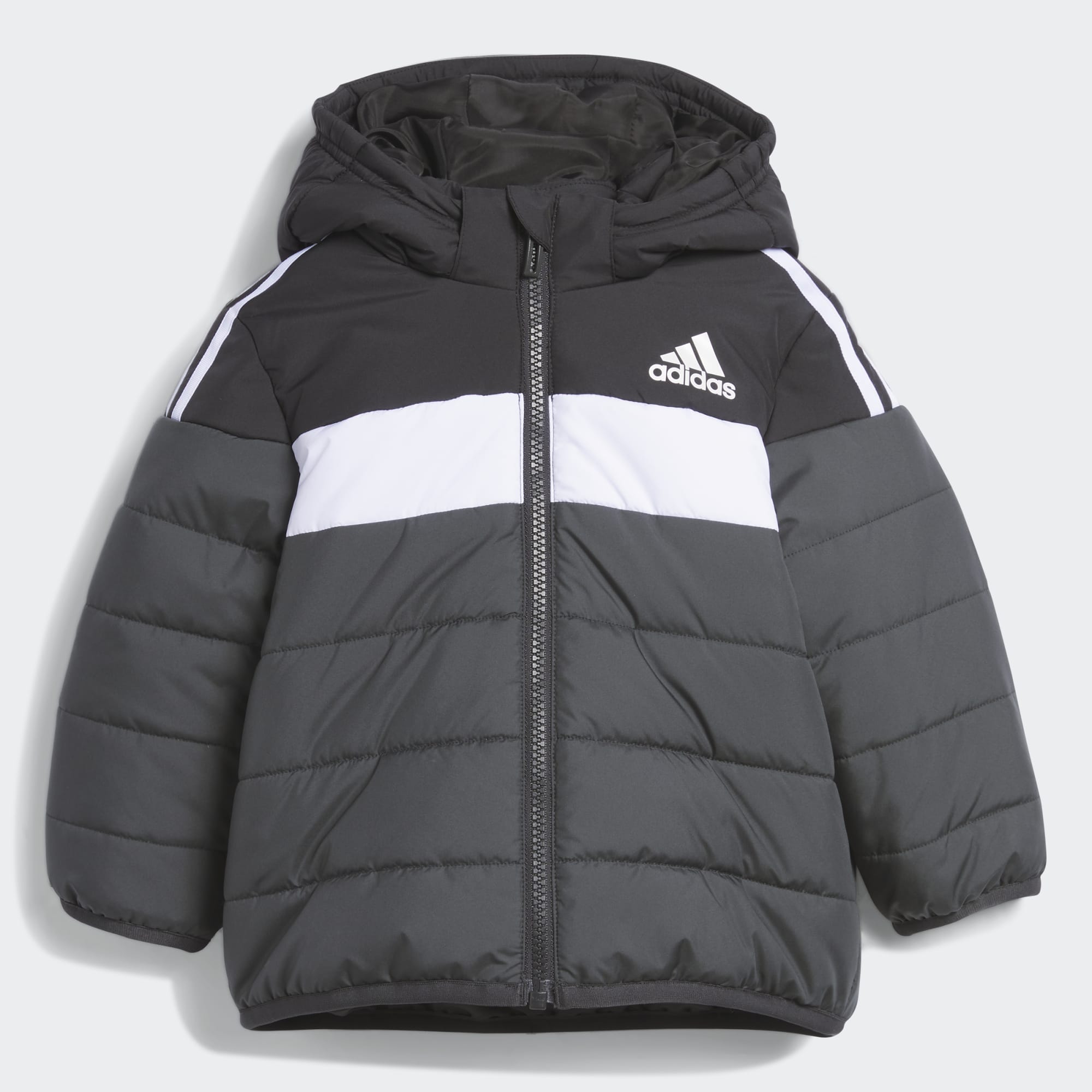 Laat het koude weer hun avontuur niet in de weg staan. Pak je kleintje lekker in met dit adidas peuterjack. Synthetische isolatie biedt warmte en behaaglijkheid. Met de afneembare capuchon pas je de look simpel aan. Karakteristieke 3-Stripes maken 't met iconische adidas stijl compleet.
