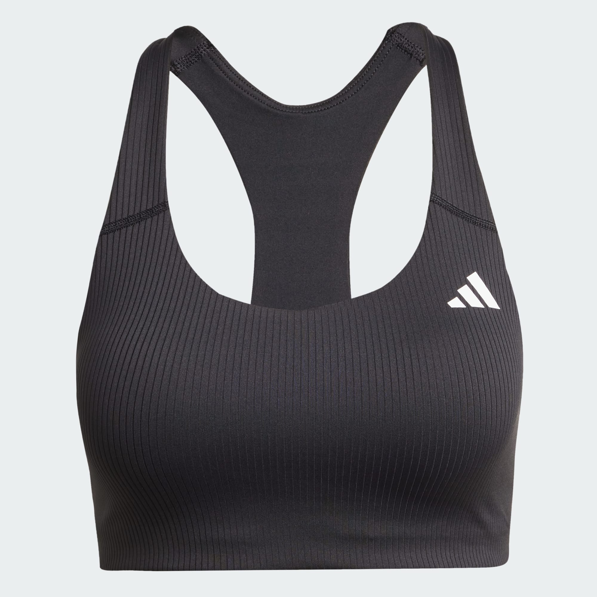 Een sportbeha met CLIMACOOL om je koel, droog en voorbereid te houden, deels gemaakt met gerecycled materiaal.