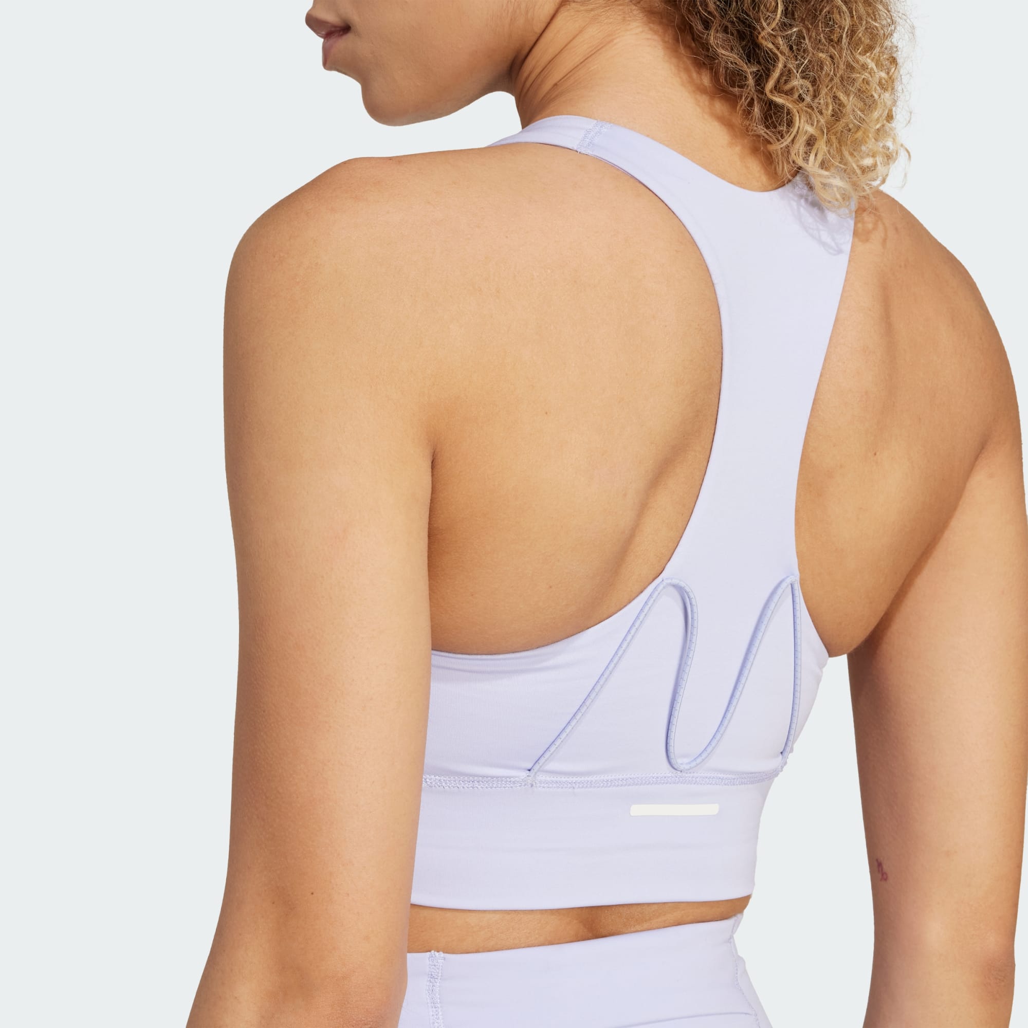 Een sportbeha met CLIMACOOL om je koel, droog en voorbereid te houden, deels gemaakt met gerecycled materiaal.