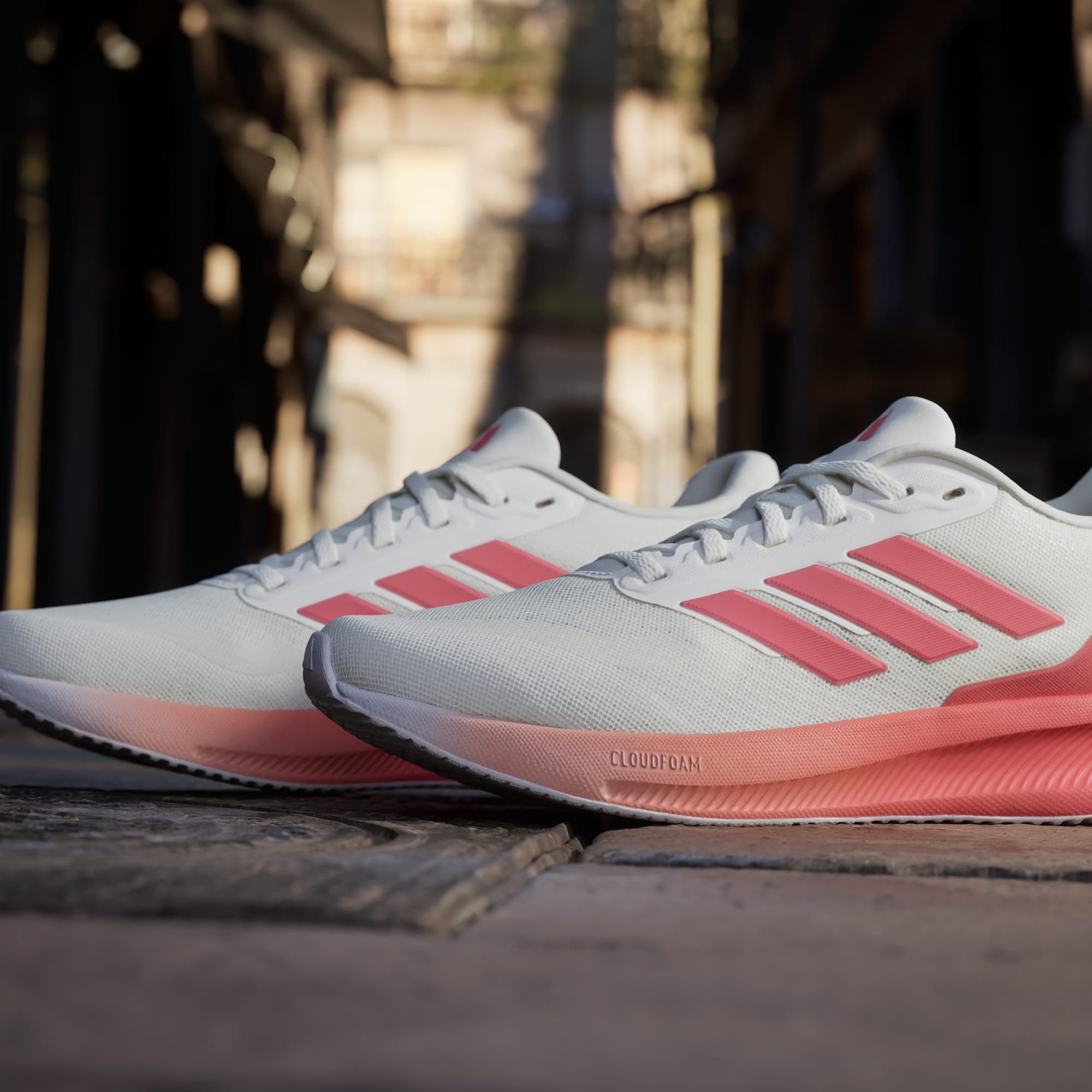 Storm van sintelbaan tot loopband op je doelen af in deze adidas hardloopschoenen. De dempende Cloudfoam-middenzool voelt zacht en ondersteunend aan vanaf het moment dat je ze aantrekt. Door het ademende bovenwerk van mesh en de robuuste Adiwear-loopzool zijn deze favoriete sneakers perfect om de hele dag te dragen.