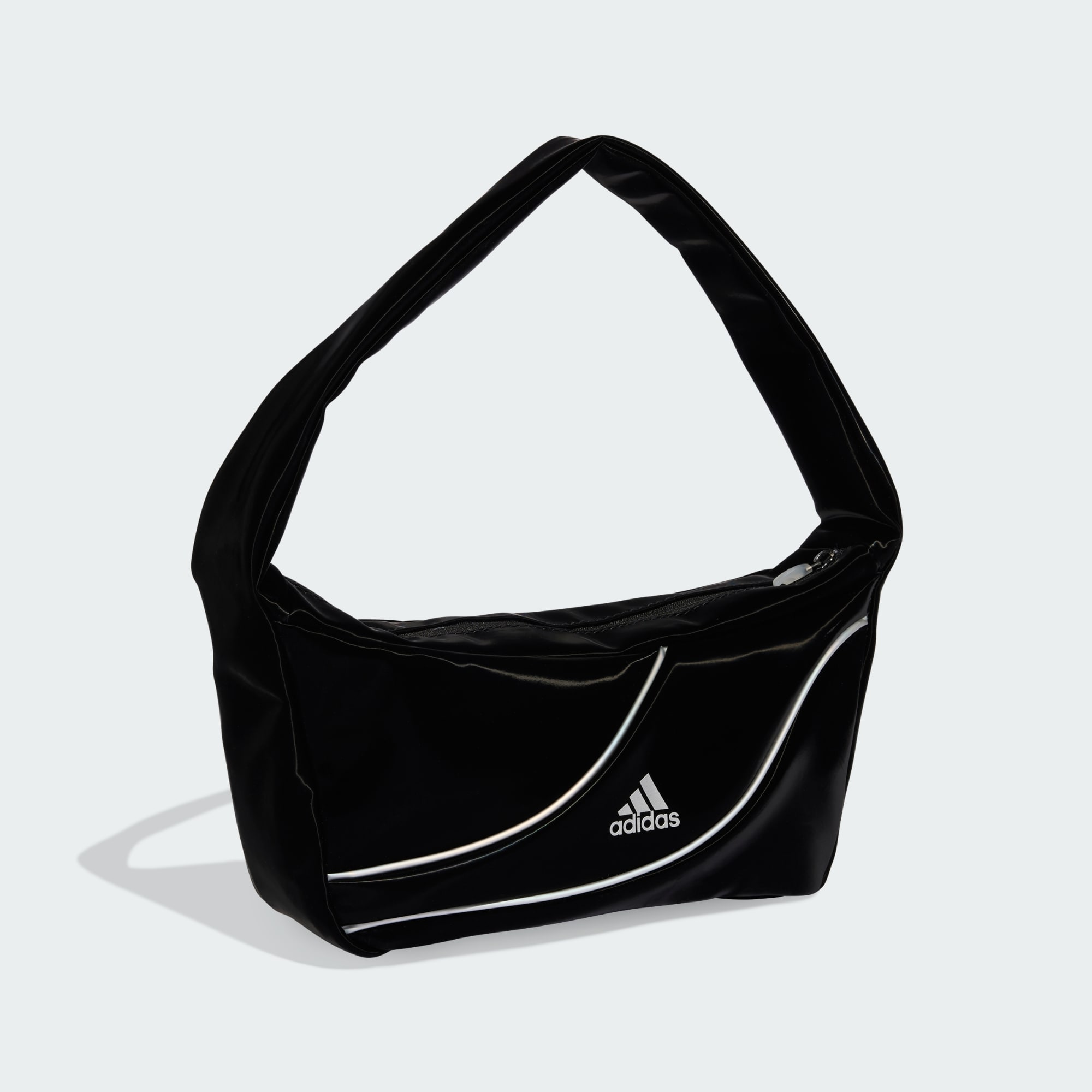Met inspiratie van de dynamische naden van voetbalshirts verwijst deze kleine schoudertas naar de iconische Teamgeist- en F50-designs. Hij combineert stijl met praktisch nut, wat 'm geschikt maakt voor dagelijks gebruik. Het gevoerde design biedt comfort, terwijl de transparante ritstrekkers een vleugje moderne flair toevoegen. Het glanzende PU-materiaal is versierd met iriserende biezen die het licht vangen bij elke beweging. Dit is een praktische optie om je spullen zelfverzekerd en stijlvol mee te nemen. En met adidas merkdetails past deze tas naadloos in onze Originals-collectie.