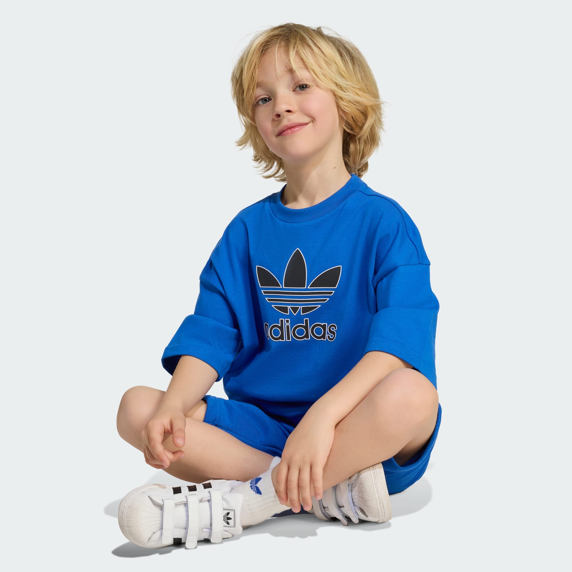 Jaren 90 vibes voor een nieuwe generatie. Dit adidas joggingpak bestaat uit een losvallend T-shirt en een short. Ze zijn allemaal gemaakt van een zachte katoenmix om ze comfortabel te houden, of ze nu onderweg zijn of gewoon lekker aan het chillen. Een groot Trefoil-logo op het T-shirt maakt het setje compleet.