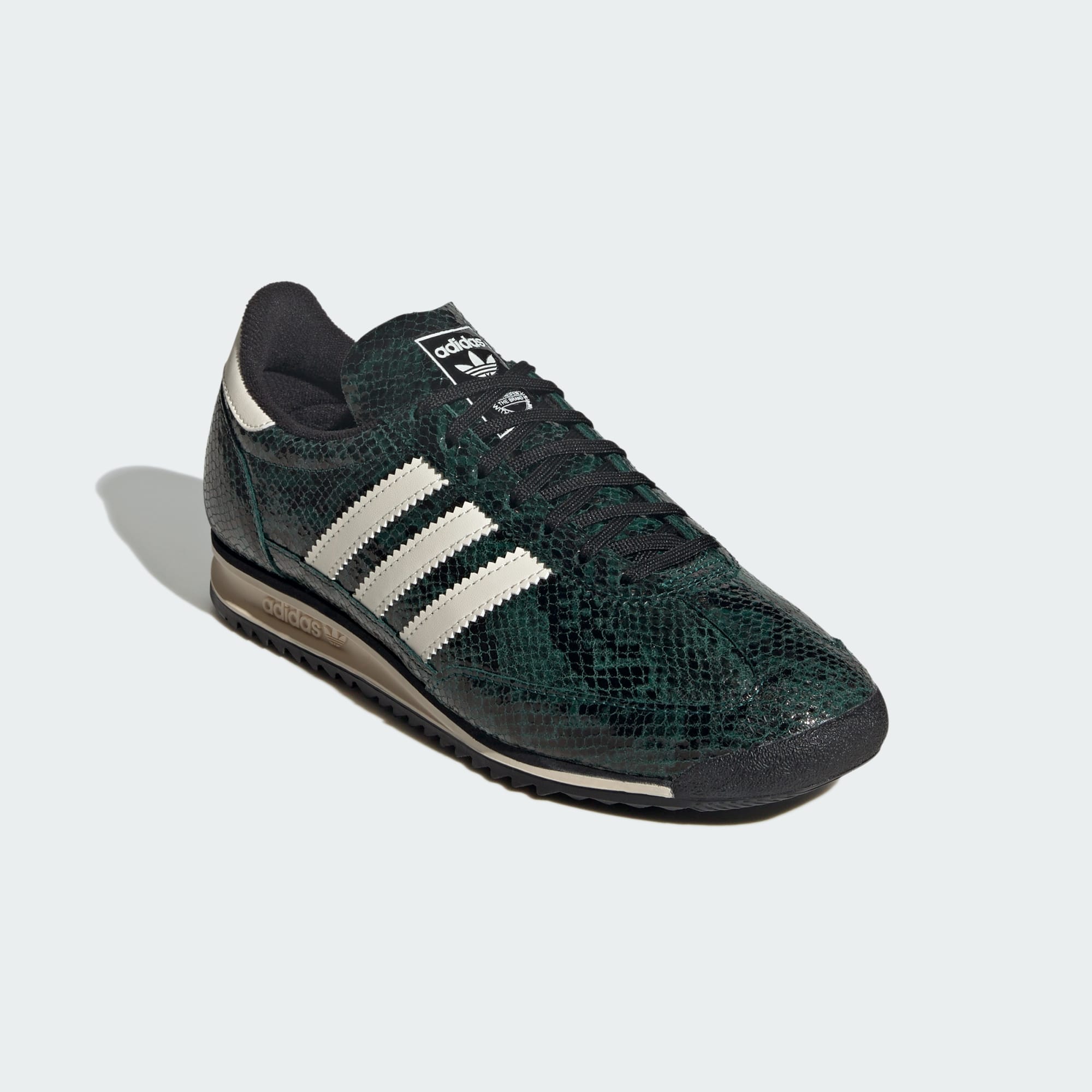 De adidas Sleeveless 72 OG schoenen zijn geïnspireerd op het model van 1972 uit het archief, een paar dat een revolutie teweegbracht met zijn lichtgewicht ontwerp. Dit exemplaar is afgewerkt met een glad leren bovenwerk dat is geaccentueerd met een slangenprint voor een subtiele textuur. Een klassieke, dunne middenzool en rubberen loopzool zorgen voor verschillende hoogtes en verhoudingen, een knipoog naar het originele ontwerp.