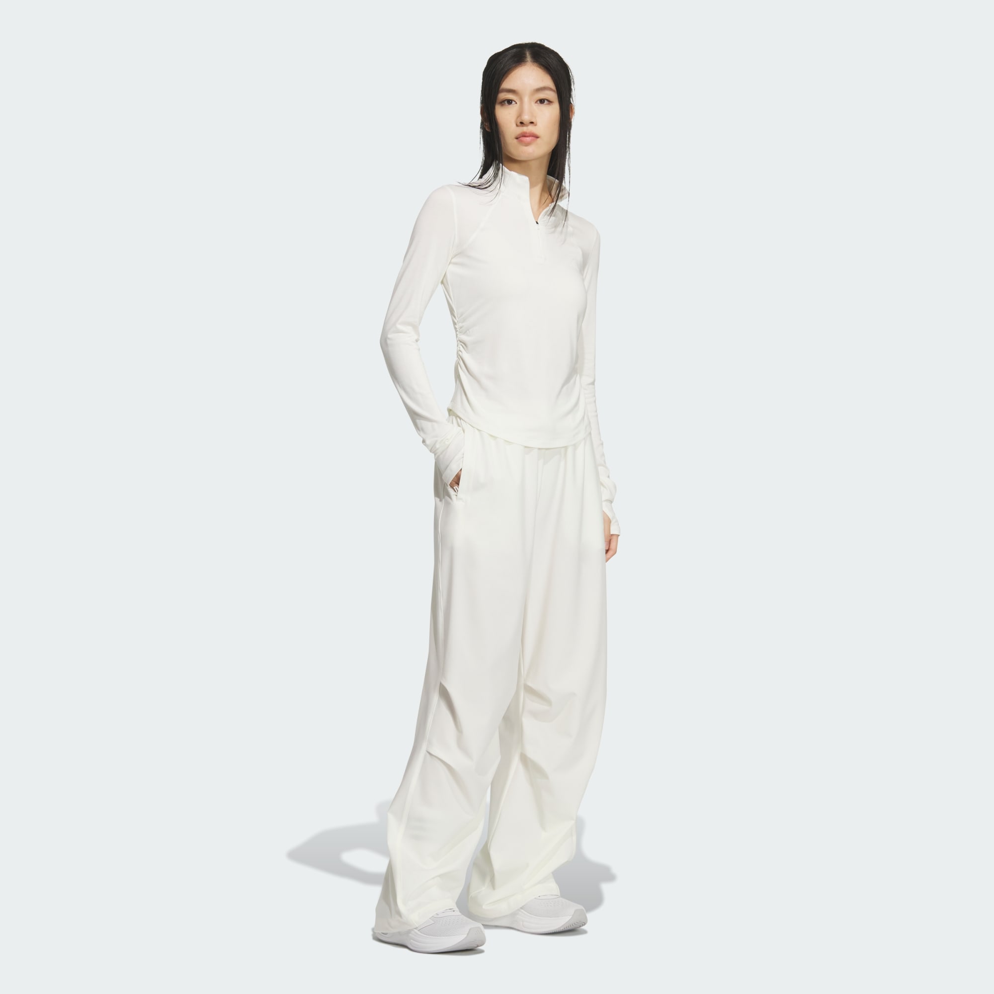 Onze slim-fit longsleeve is met zorg ontworpen en een veelzijdige laag met een gestroomlijnd model. Het strakke model voelt zacht aan voor klassiek comfort. Met een korte silhouet en een halflange rits kan dit T-shirt worden gedragen als een chique laag of een opvallend solokledingstuk. De getailleerde taille en ronde zoom benadrukken onze aandacht voor de fijnere details. De verborgen ritssluiting zorgt voor een afgewerkte look, terwijl duimgaten stylingopties toevoegen voor koelere dagen. Met een iconische 3 Bar Logo-print voor authenticiteit belichaamt dit shirt de stijl van adidas.