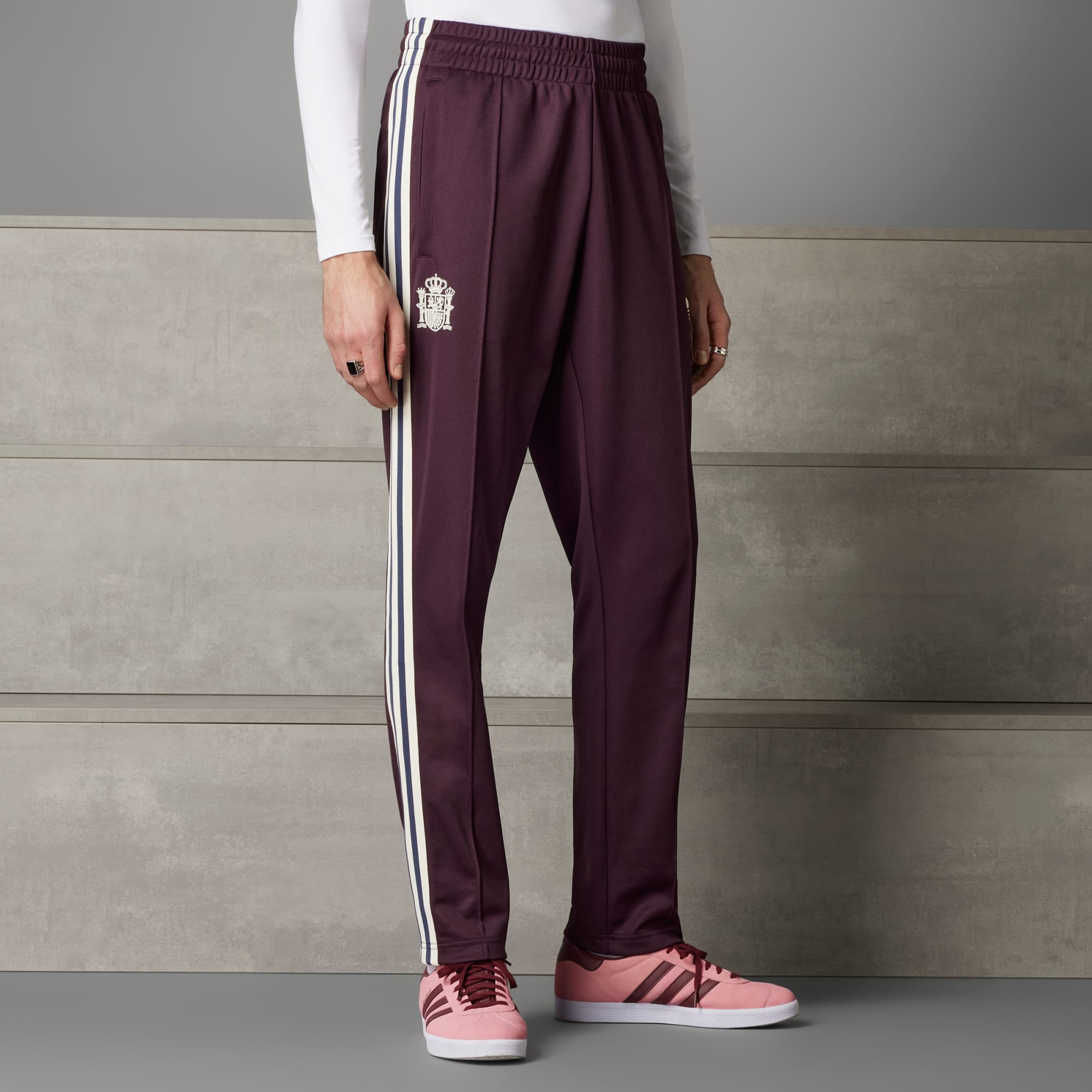 Een voetbaltrainingsbroek met 3-Stripes, een teamembleem, en vintage invloeden.
