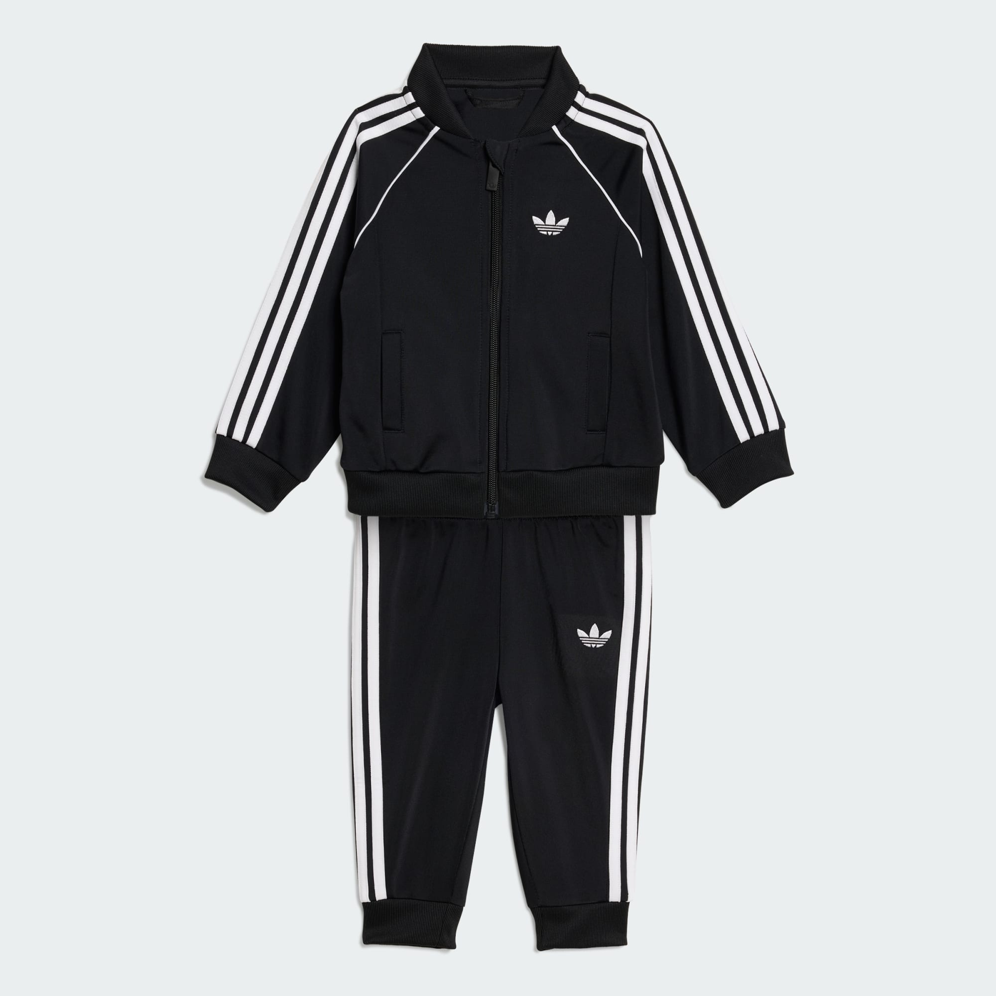 Het trainingspak is een knipoog naar een rijk erfgoed, opnieuw vormgegeven voor de kleine trendsetters van nu. Dit trainingspak maakt deel uit van de Adicolor-collectie, die de kracht en authenticiteit van het DNA van adidas viert. Met zijn iconische geborduurde Trefoil-logo is dit trainingspak een tijdloos stuk dat het hart van Originals weerspiegelt. Gemaakt van tricot voelt het zacht en comfortabel aan voor alledaagse verkenningen. De normale pasvorm zorgt voor bewegingsvrijheid, terwijl de bomberhals een vleugje klassieke stijl toevoegt. Door de ritssluiting trek je 'm makkelijk aan en uit, waardoor deze set een geweldige keuze is voor drukke ouders met actieve peuters. Of het nu speeltijd is of een informeel uitje, deze tweedelige set helpt jouw kleintje om zich comfortabel en stijlvol te voelen. Met zijn wortels in een iconische geschiedenis is dit trainingspak een must-have voor jonge Originals-fans.