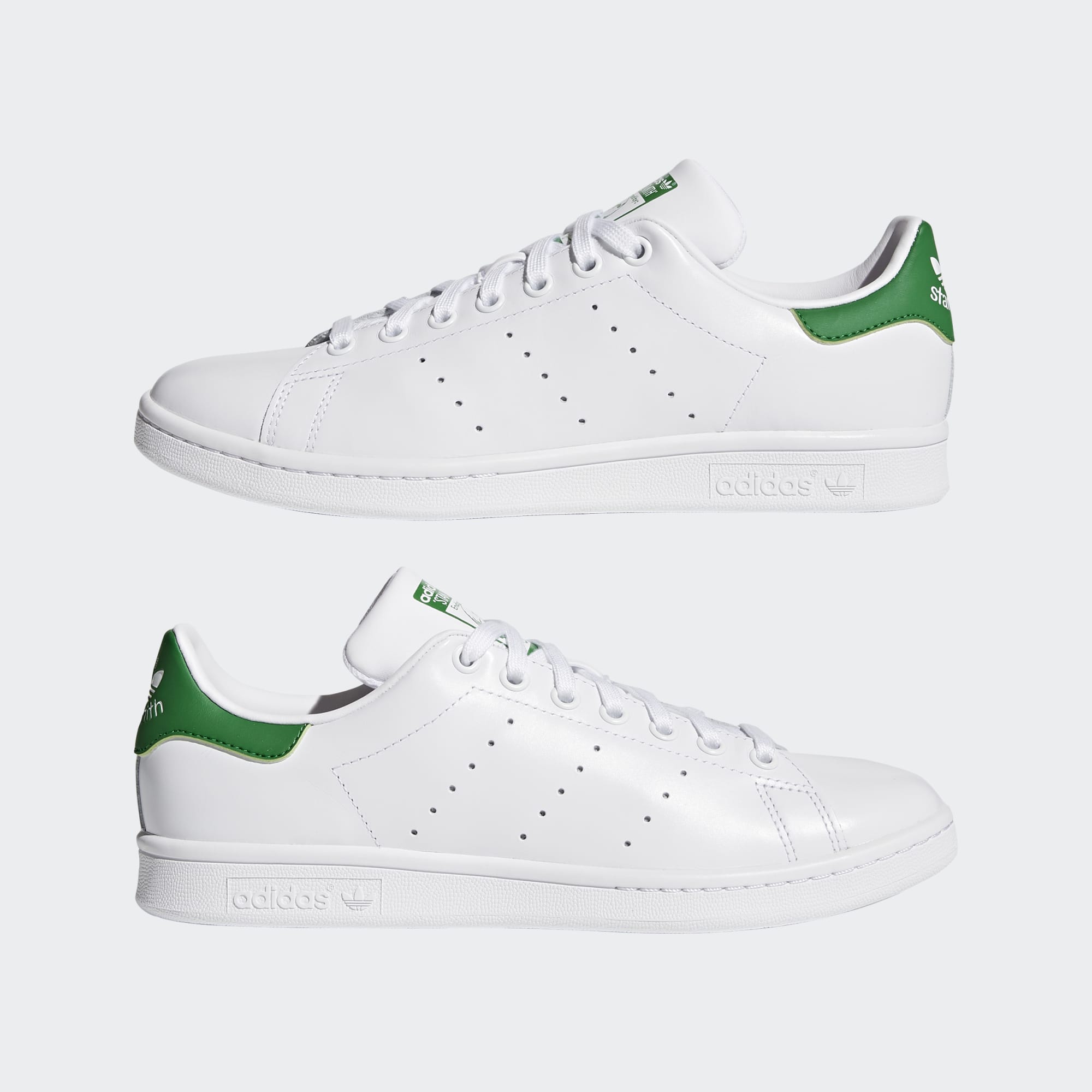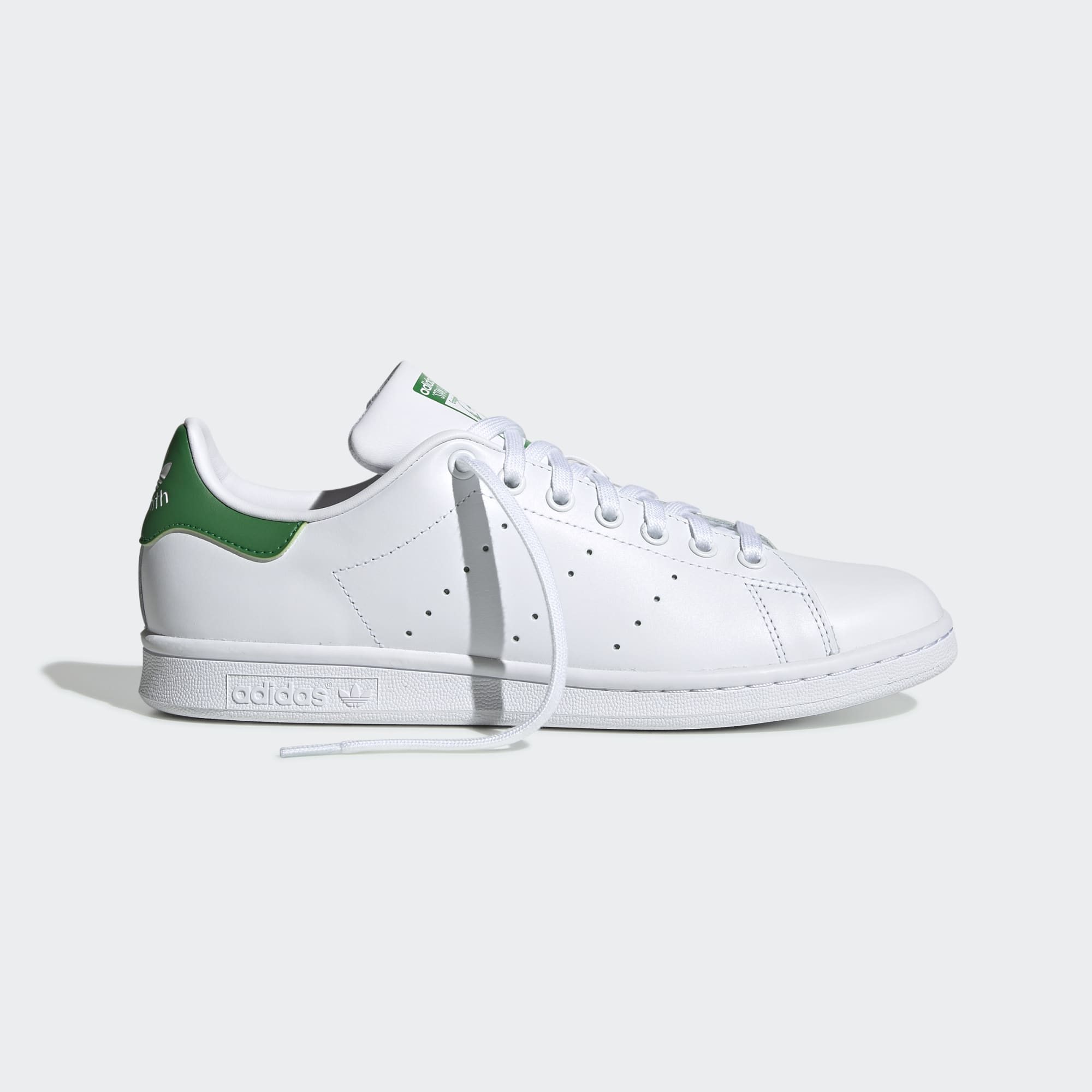 Afgewerkt met drie geperforeerde strepen en Stan Smith-logo's op de tong en het hielstuk.
