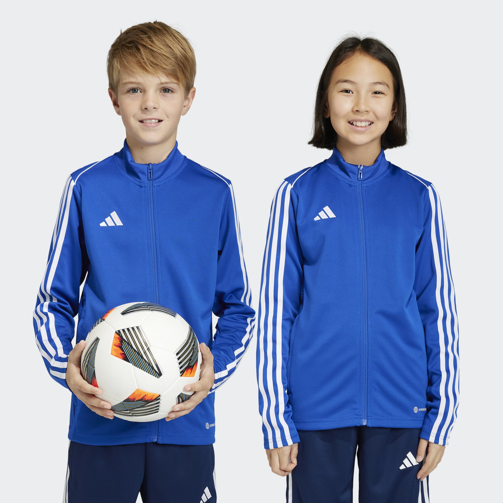 Gemaakt voor de prachtigste sport. Door de zachte stof en de opstaande kraag vormt dit junior adidas voetbaljack de perfecte extra laag op het trainingsveld. Het komt uit de Tiro 23 League-collectie en houdt je met vochtabsorberend AEROREADY droog en comfortabel, zelfs als je 't helemaal tot bovenaan hebt dichtgeritst. Dankzij de slanke, gestroomlijnde pasvorm kun je 't ook aanhouden als je midden in alle actie zit. Dit met 100% gerecyclede materialen gemaakte product vertegenwoordigt slechts één van onze oplossingen om te helpen een einde te maken aan plastic afval.