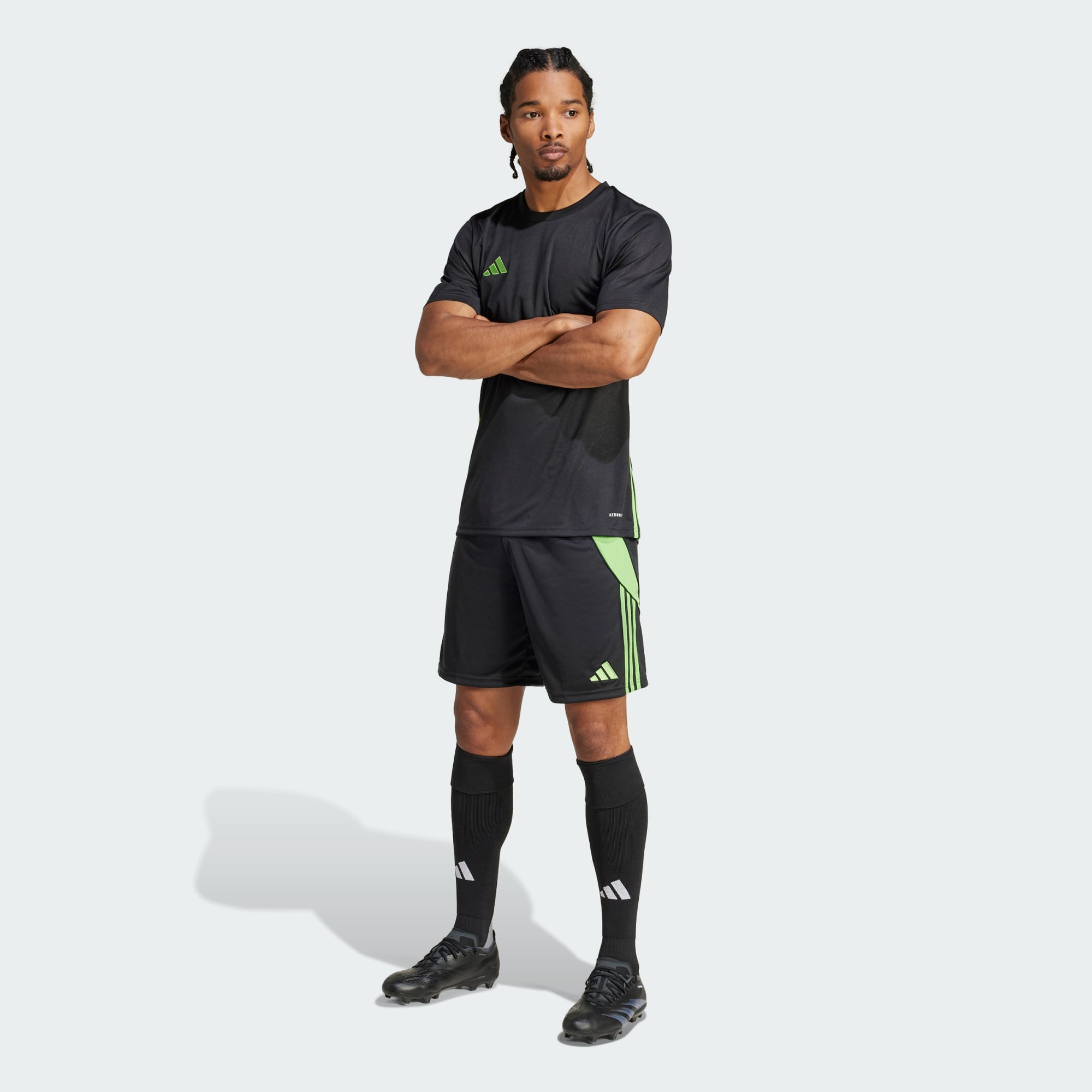 Zet het veld in vuur en vlam in deze lichtgewicht Tiro 24 voetbalshort van adidas. Het model kan wedstrijden met de hoogste intensiteit aan en houdt je met vochtafvoerend AEROREADY fris tot het laatste fluitsignaal. De 3-Stripes aan de zijkanten en het geborduurde 3 Bar Logo maken 'm speels compleet.