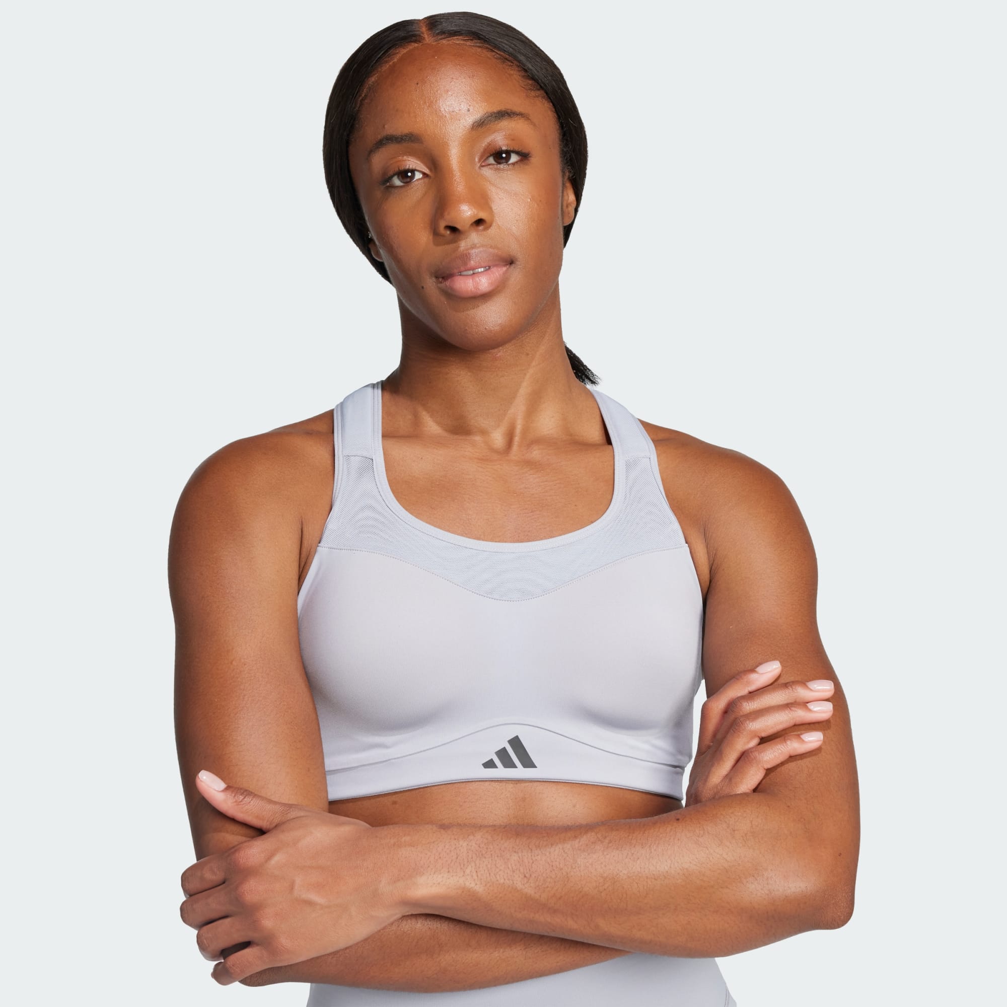 Een sportbeha met CLIMACOOL om je koel, droog en voorbereid te houden, deels gemaakt met gerecycled materiaal.