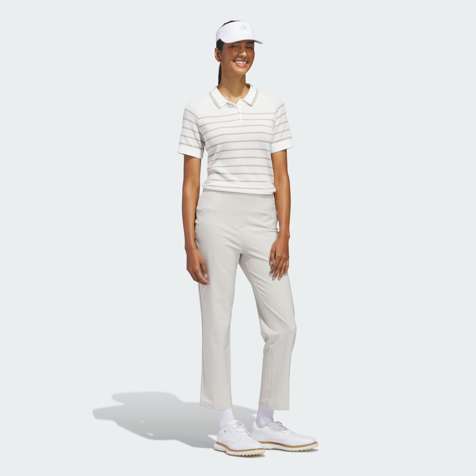 Of je nu relaxt je negen holes loopt of meedoet aan een toernooi, de Ultimate365+ enkelbroek is de ultieme keuze voor stijl en prestaties. Deze broek is gemaakt van een elastische, stretchgeweven stof, zodat je onbelemmerd kunt bewegen. Hij is gemakkelijk aan te trekken, terwijl power-mesh in de taille voor ventilatie en ondersteuning zorgt. De strakke pasvorm met een hoge taille levert een flatterend silhouet. Het adidas Performance-logo onder de rechter achterzak maakt de look compleet. Voeg deze golfbroek toe aan je garderobe en maak een statement - op en buiten de baan.