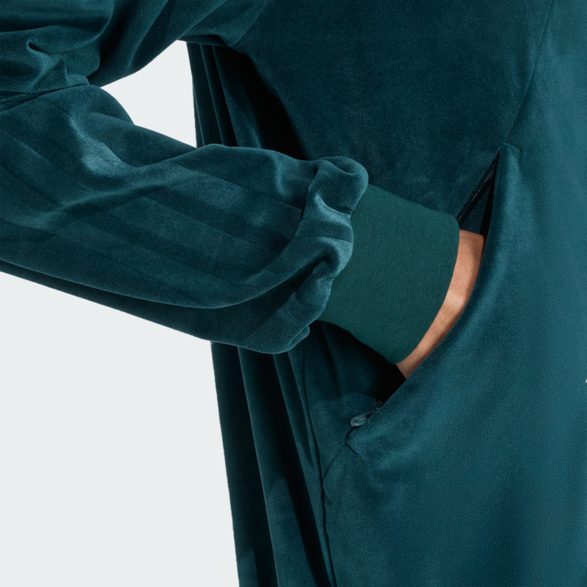 Als de temperatuur daalt, is dit adidas sportjack er om je behaaglijk te houden. Het velours voelt zacht, luxe en warm aan, dus comfort is gegarandeerd. De kenmerkende 3-Stripes in verzonken reliëf op de mouwen laten jouw adidas trots zien. Ritszakken bieden een veilige plek voor je telefoon en sleutels als je onderweg bent.
