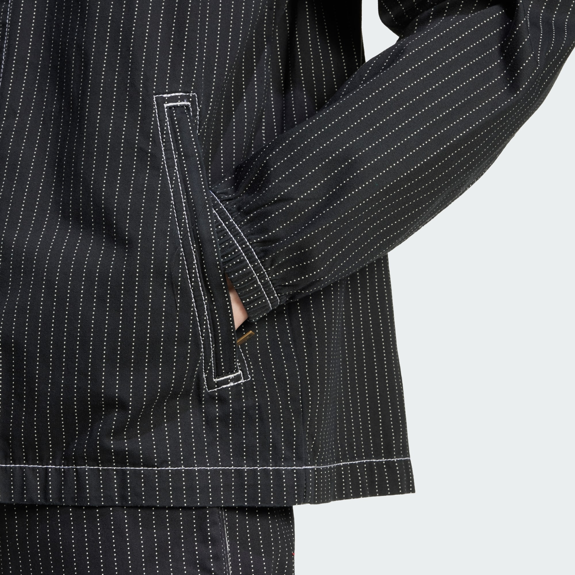 Moderne streetwear met een workwear-uitstraling. Dit adidas coachjack van geweven katoen maakt via op werkkleding geïnspireerde designdetails verbinding met het sport-DNA van het merk. De Wabash stippenprint verwijst zowel naar klassieke basketbalshirts als naar oldskool werkkleding. De katoenen keperstof is licht en toch robuust, en met het trekkoord in de zoom bepaal je precies de juiste pasvorm.