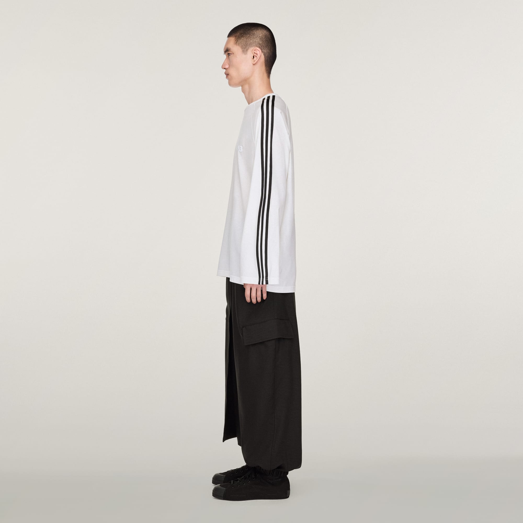 Dit Y-3 3-Stripes longsleeve is niet zo klassiek, want gemaakt van een luxe mix van lyocell, nylon en schapenwol met een losse pasvorm. De kenmerkende 3-Stripes zijn gedeeltelijk voorzien van draad, waardoor je met de vorm kunt spelen.