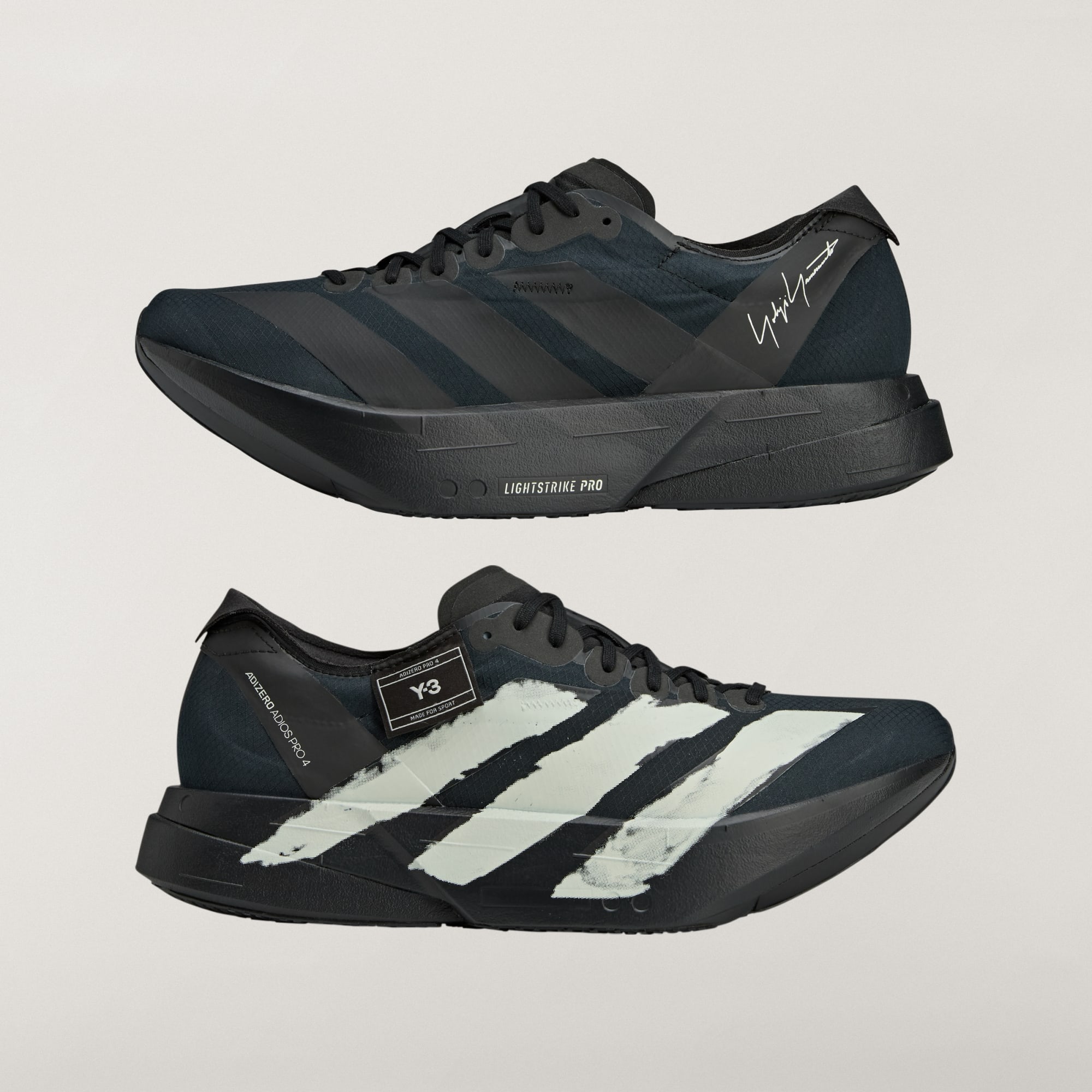 Deze Y-3 Adios Pro 4 is een vernieuwde versie van de schoenen uit het topsegment van adidas Running. Hij is gemaakt om langeafstandsrecords te verbreken, met een bovenwerk van stretch-mesh, ultralichte, dubbellaagse Lightstrike Pro-middenzooldemping en ENERGYRODS onder de voet voor maximale energieteruggave, stabiliteit en stuwkracht. Verder is-ie uitgerust met een rubberen LIGHTTRAXION-loopzool voor minder gewicht en superieure grip. Alle technologieën komen samen zodat je sneller verder kunt gaan. Een Y-3 badge en een graphic van Yohji Yamamoto's handtekening tegenover elkaar op de boord maken de look compleet.