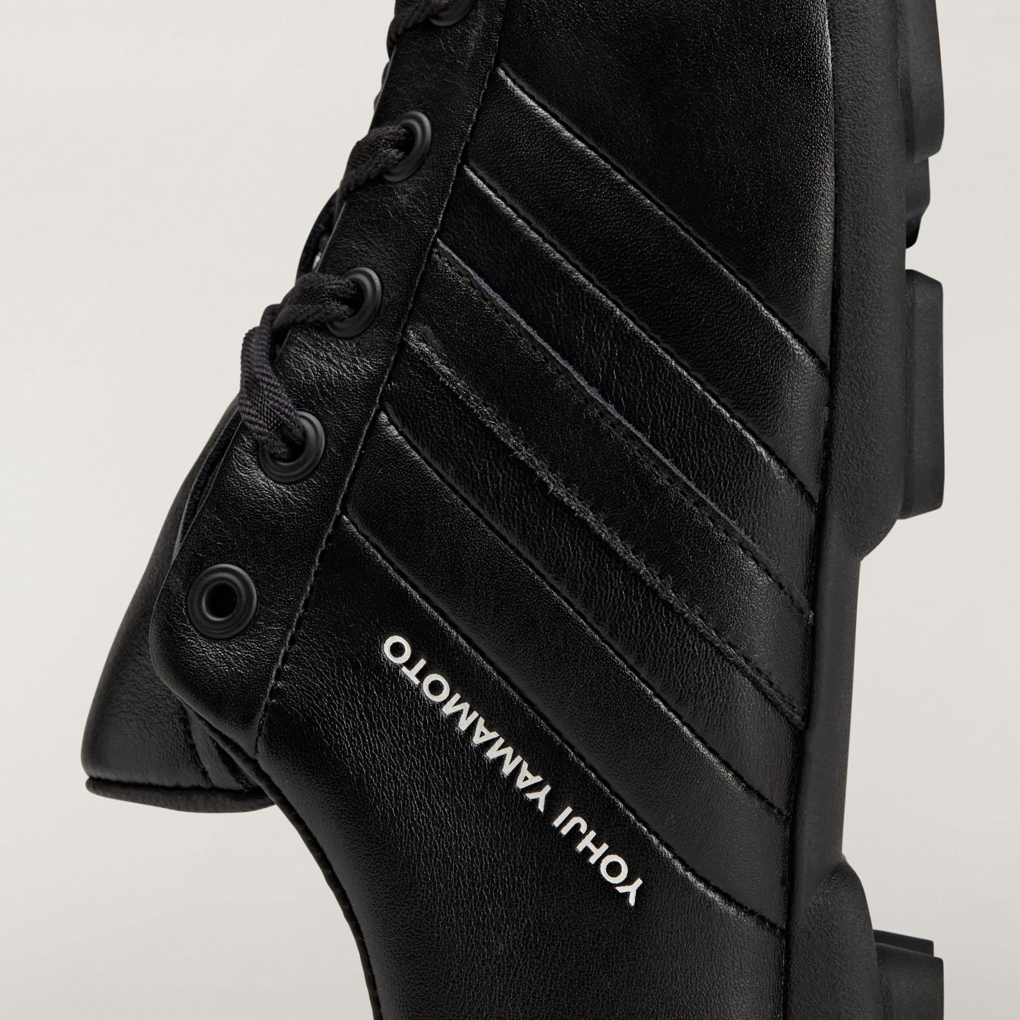 De leren voering en de vetersluiting creëren een comfortabele, betrouwbare pasvorm, en de kenmerkende adidas 3-Stripes, het Y-3 logo en een Yohji Yamamoto-tekst werken dit paar netjes af.
