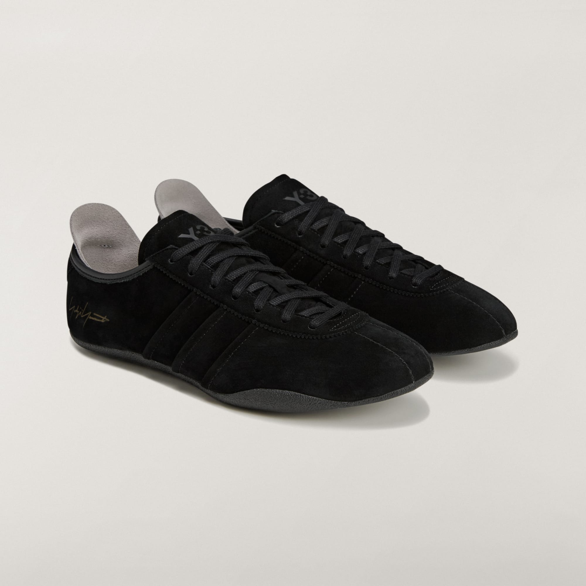De Y-3 Tokyo, een premium kijk op het adidas atletiekerfgoed, voegt een gestroomlijnd, zeer low-profile silhouet toe aan de collectie van Y-3. Het volledig van suède gemaakte model is uitzonderlijk zacht en soepel. De schoen is afgewerkt met 3-Stripes, een verzonken Y-3-logo, een met laser gegraveerde handtekening van Yohji Yamamoto en een Y-vorm op de hiel die subtiel, maar onmiskenbaar verwijst naar de samenwerking met Y-3.