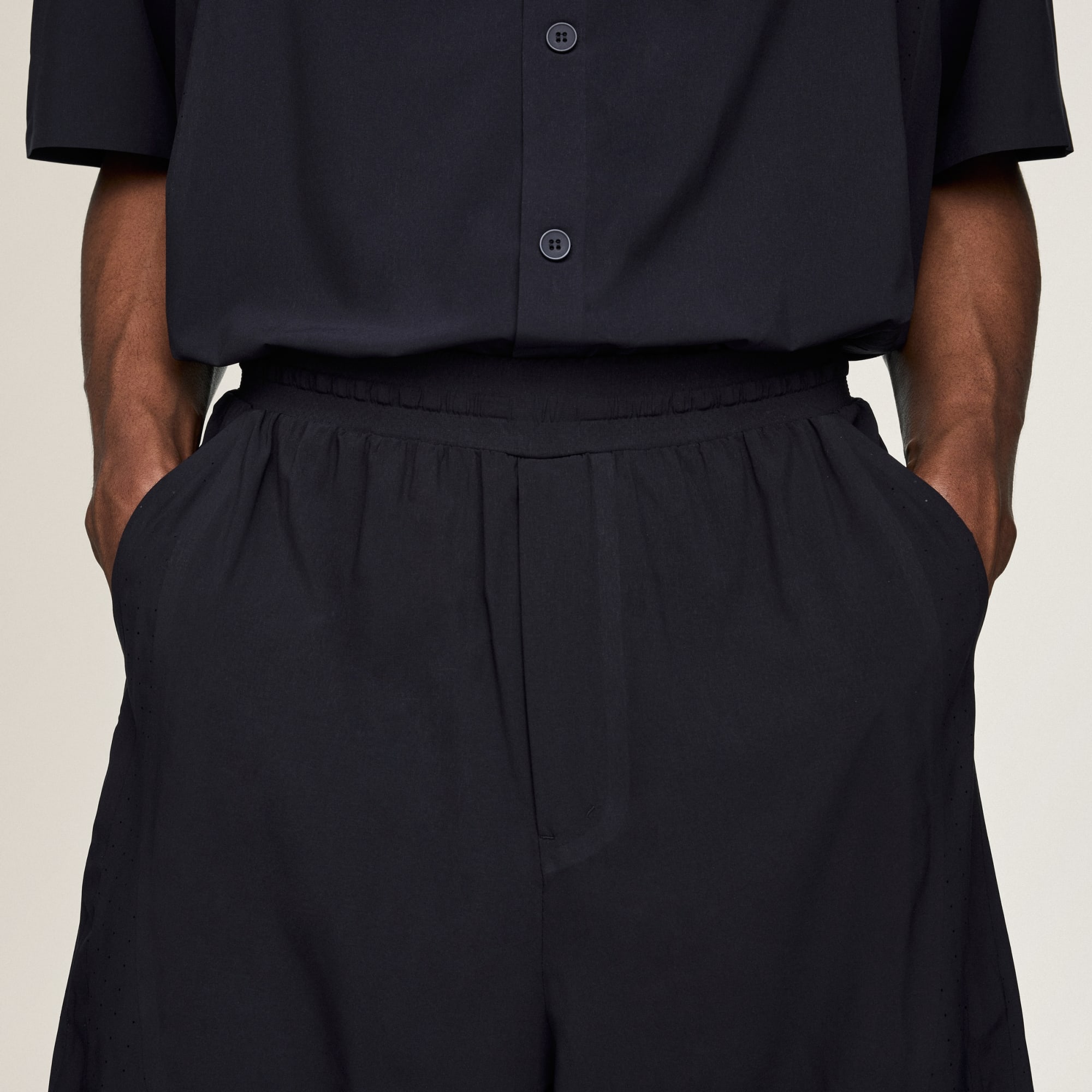 De Y-3 Ultralight Woven short is geïnspireerd op de geschiedenis van adidas in sportkleding en wordt gedefinieerd door Yohji Yamamoto's oog voor onconventionele mode. Hij herdefinieert alledaagse elegantie met zijn lichtgewicht geweven stretchstof, gemaakt voor zowel prestaties als stijl. Deze short, met normale pasvorm, biedt comfort en bewegingsvrijheid. De elastische tailleband met een geïntegreerd strikkoord zorgt voor een goede pasvorm, terwijl de steekzakken en extra paspelzak op de achterkant praktische opbergmogelijkheden bieden. De gelijmde splitten zijn asymmetrisch over de voorkant geplaatst voor ventilatie, waardoor deze short bij uitstek geschikt is voor avonturen in de stad. Het kleine Y-3 logo in dezelfde kleur geeft op subtiele wijze aan dat het merk kwaliteit en stijl hoog in het vaandel heeft staan.