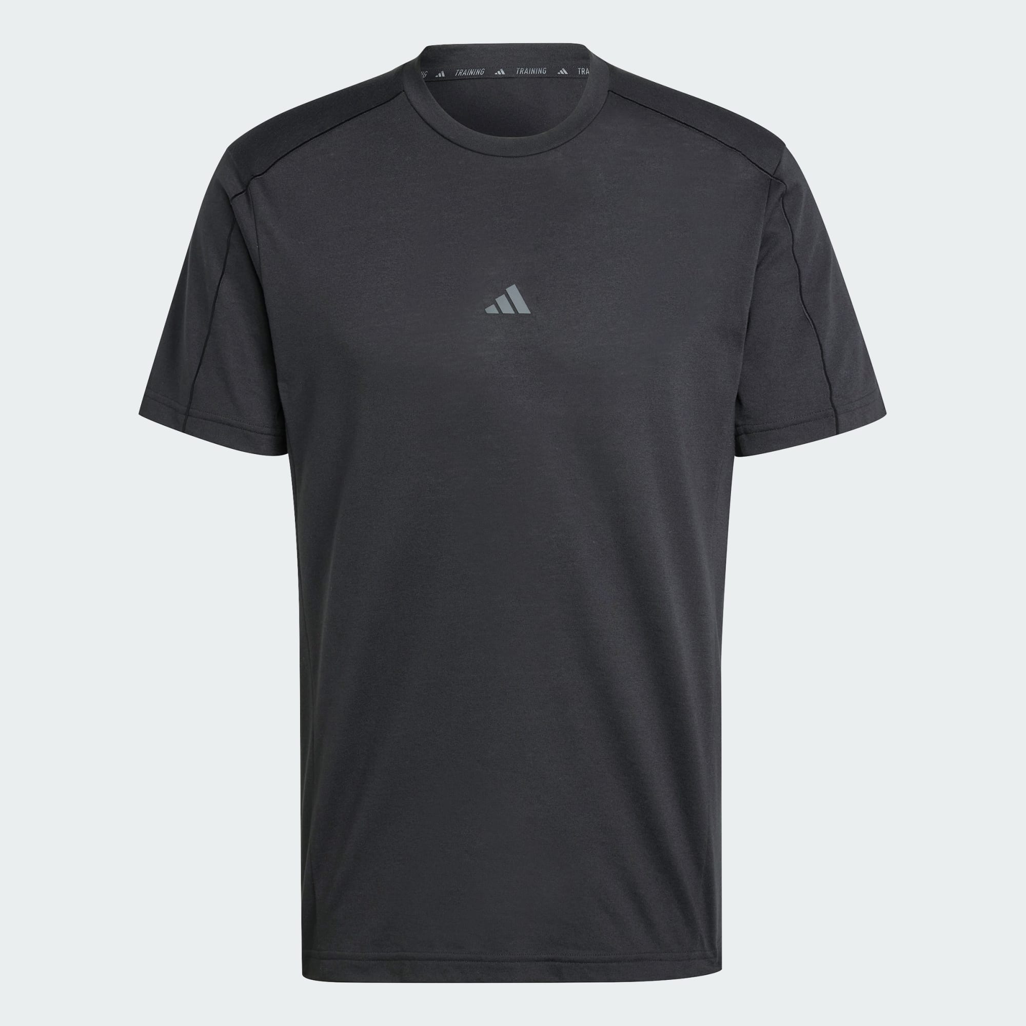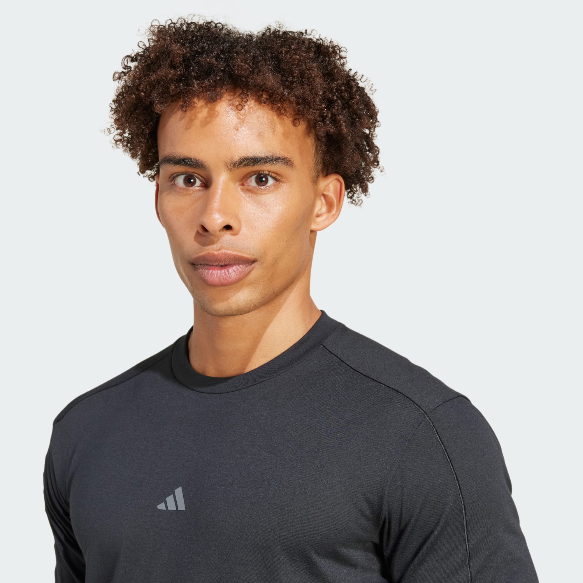 Een AEROREADY yoga-T-shirt dat deels is gemaakt met gerecycled materiaal.