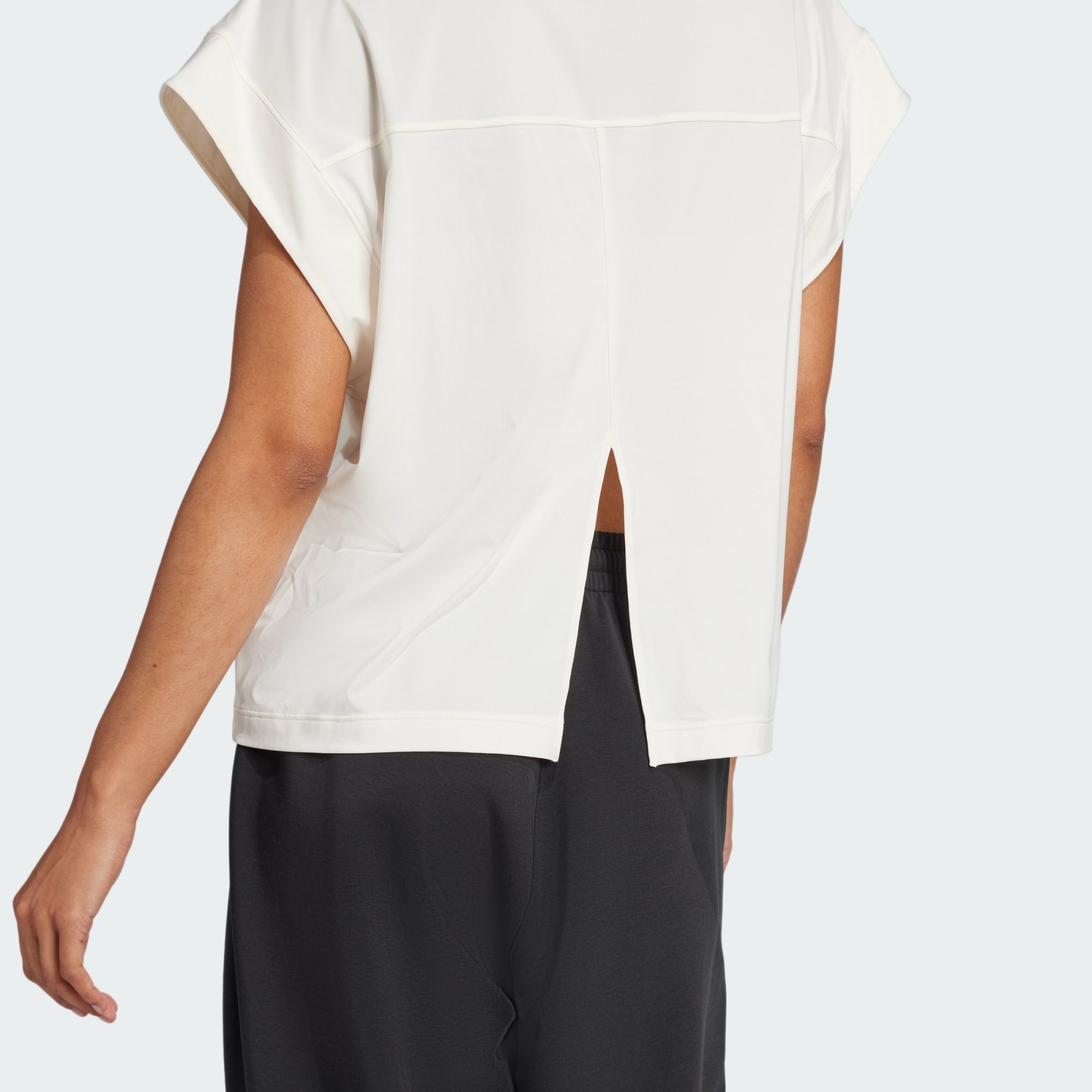 Vind je centrum in dit adidas yoga-T-shirt. De zachte stof houdt je comfortabel tijdens je flow, en door de split aan de achterkant kun je makkelijk twisten en opzij bewegen. CLIMACOOL voert zweet af voor een koel en droog gevoel, en presteren zonder afgeleid te worden. CLIMACOOL helpt zweet onder controle te houden met materialen die snel vocht afvoeren. Door de sneldrogende vezels voelt je huid steeds fris aan. Dit product is gemaakt met ten minste 70% aan gerecyclede materialen. Door hergebruik van materialen die al eerder zijn gecreëerd, helpen we afval verminderen, en ook onze afhankelijkheid van beperkt beschikbare grondstoffen. Daarnaast verkleint het de voetafdruk van onze producten.